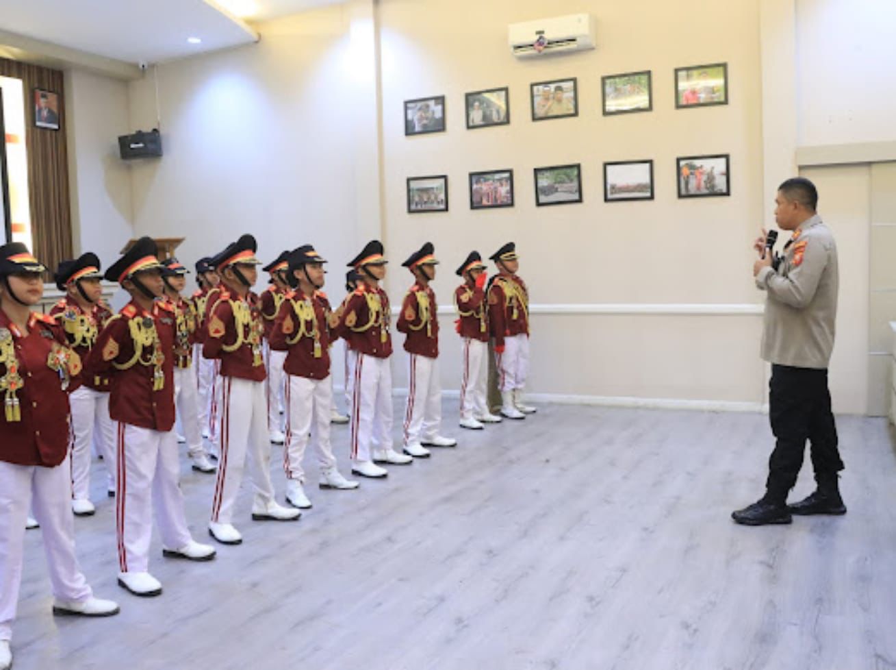 Baraknews Jabar-Kapolres Sukabumi Polda Jabar AKBP Maruly Pardede memberikan apresiasi dan penghargaan kepada tim Polisi Cilik Polres Sukabumi Polda Jabar yang berprestasi sebagai Juara Tiga Lomba Polisi Cilik Tingkat Polda Jabar di Mapolres Sukabumi, Palabuhanratu, Jumat (16/6/23).
