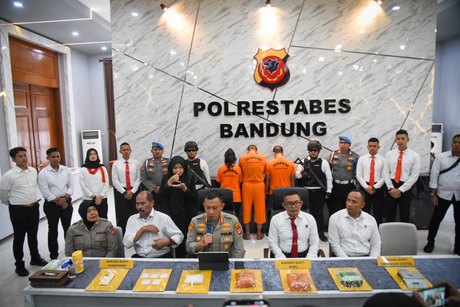 “Mengungkap kasus narkotika jenis sabu dengan berat 3,8 kilogram atau 3.680,12 gram dengan tersangka ada tiga orang yaitu VGA, RAR, dan HR, untuk HR ini merupakan istri dari si RAR,” kata Kapolrestabes Bandung, Polds Jabar Kombes Budi Sartono, S. I. K. M. Si. M. Han di Mapolrestabes Bandung Polda Jabar pada Selasa (20/6/23).