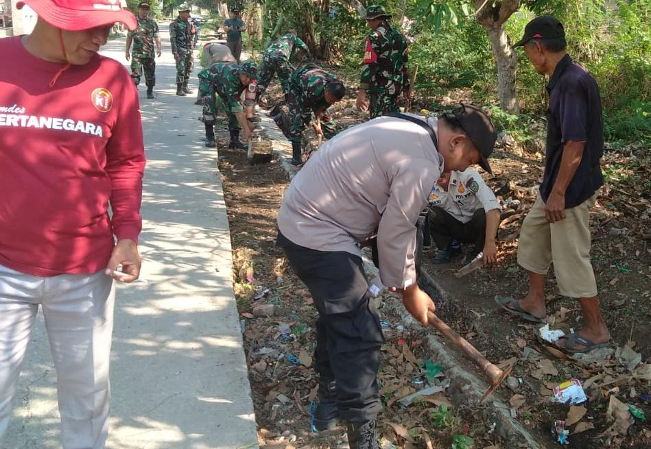 Kegiatan ini melibatkan kerjasama antara TNI, POLRI, dan Pemdes serta masyarakat setempat untuk membersihkan solokan guna mengantisipasi terjadinya genangan air.