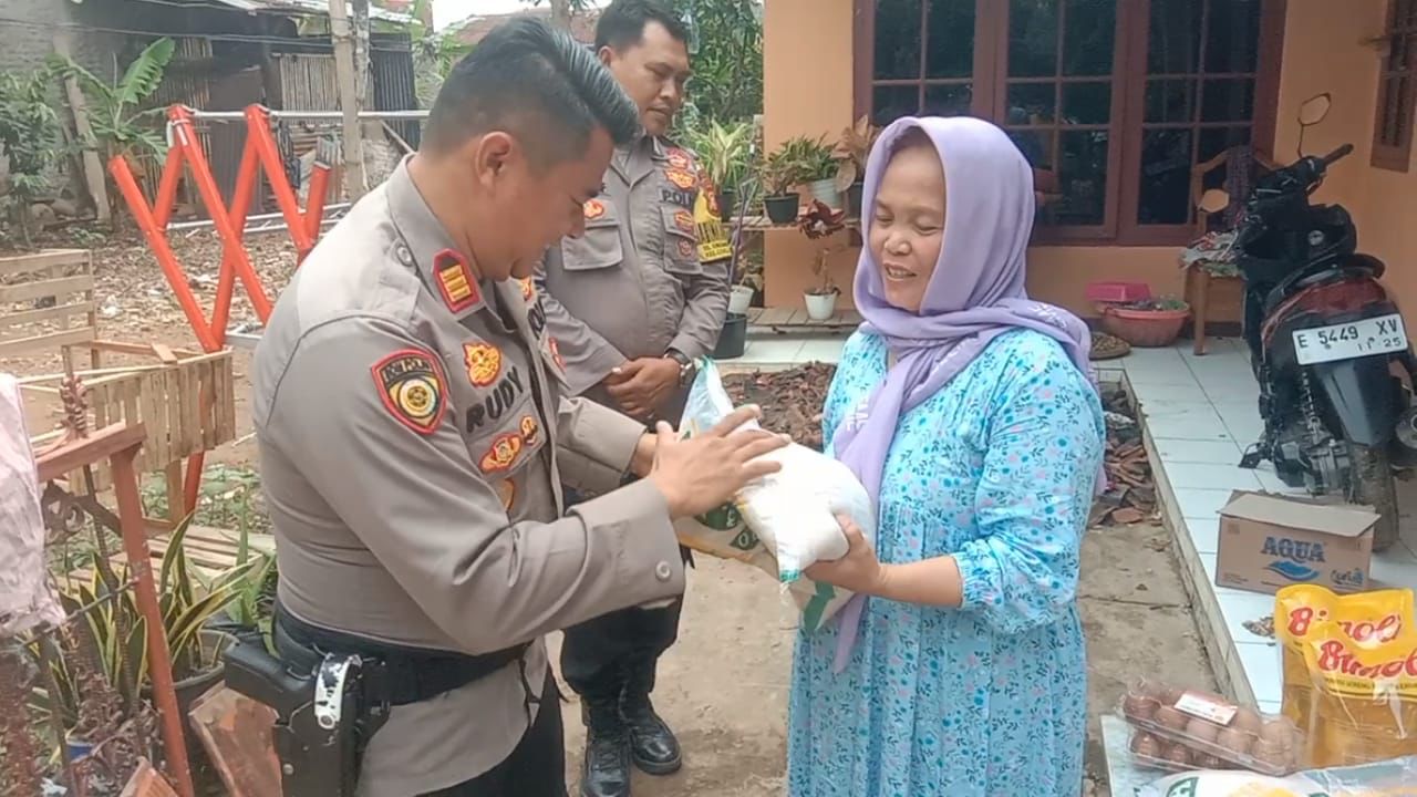Jabar–Kapolsek Cikijing Polres Majalengka Polda Jabar AKP Rudy Djunardi M, S.H., M.H. beserta Anggota menunjukan kepeduliannya dengan memberikan bantuan berupa paket sembako kepada korban kebakaran rumah di Blok Salasa Desa Cikijing, Kecamatan Cikijing, Kabupaten Majalengka, Rabu (27/12/2023).