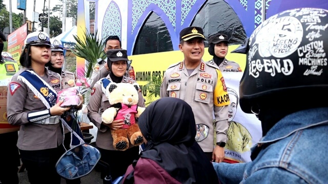 “Khususnya kepada pemudik ya, tadi kami membagikan takjil, bunga dan sabuk pengaman bayi,” katanya.