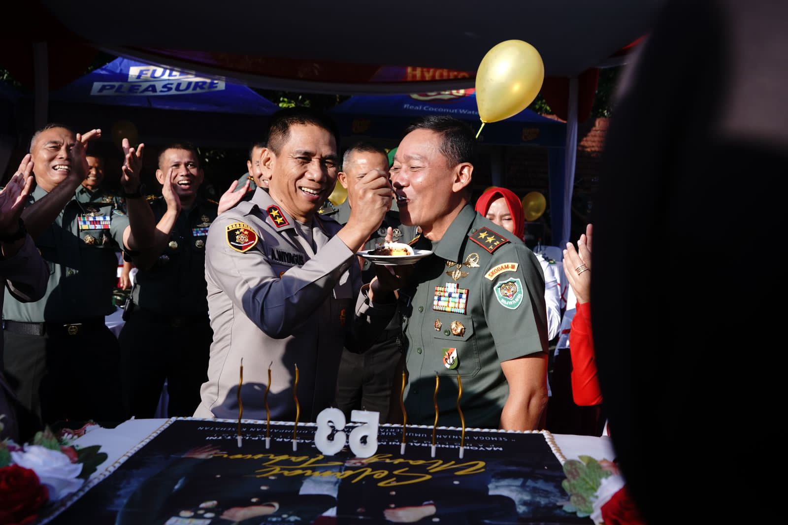 Kejutan ini diberikan di tenda halaman apel makodam III Siliwangi dengan suasana penuh keakraban dan kekeluargaan. Kapolda Jabar beserta jajarannya tiba di lokasi dengan membawa kue ulang tahun dan hadiah, disambut dengan senyuman hangat oleh Pangdam III Siliwangi.