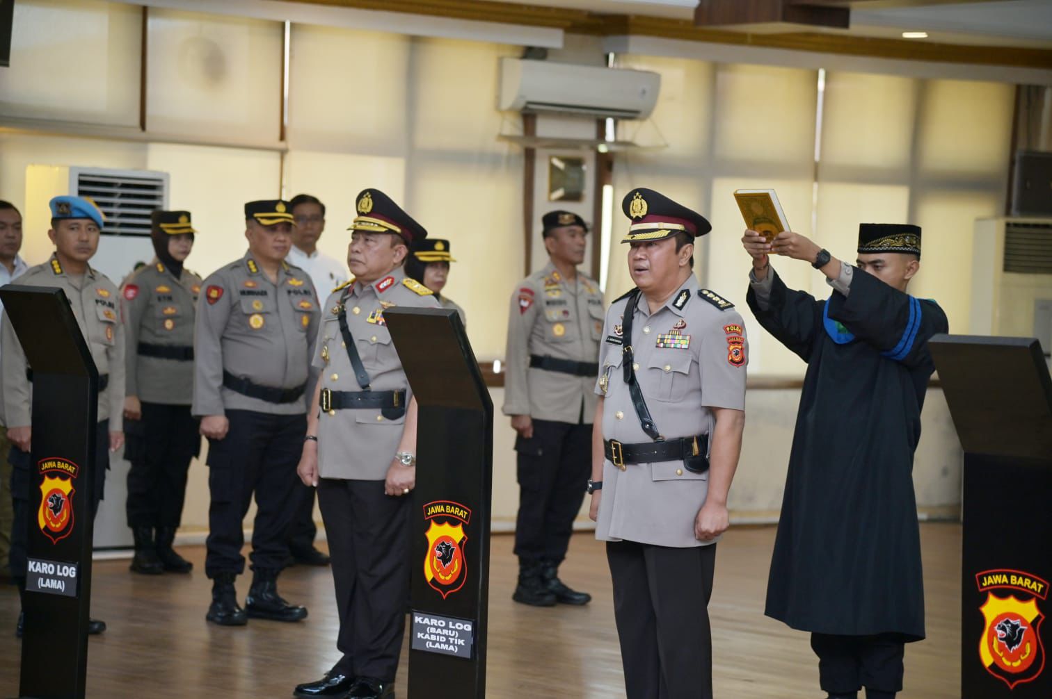 Jabar–Kapolda Jabar Irjen Pol. Dr. Akhmad Wiyagus, S.I.K., M.Si., M.M pimpin kegiatan serah terima jabatan Karo Logistik, Kabid TIK, dan Kapolres Sukabumi dilanjutkan acara pisah sambut yag dilaksanakan di Mapolda Jawa Barat. Rabu, (14/8/2024).