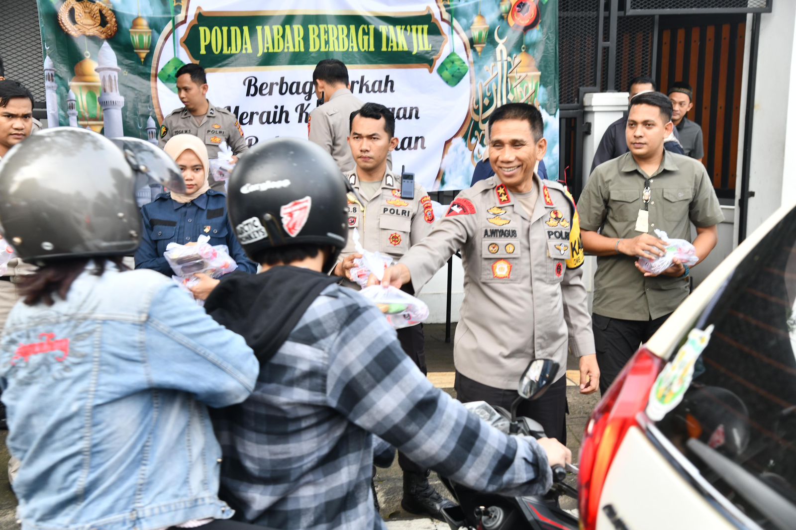 Pantauan di lokasi, Kapolda Jabar Irjen Pol. Dr. Akhmad Wiyagus, S.I.K., M.Si., M.M. langsung membagikan takjil kepada para pengendara motor saat melintas di Depan Rumah Dinas Kapolda Jabar.