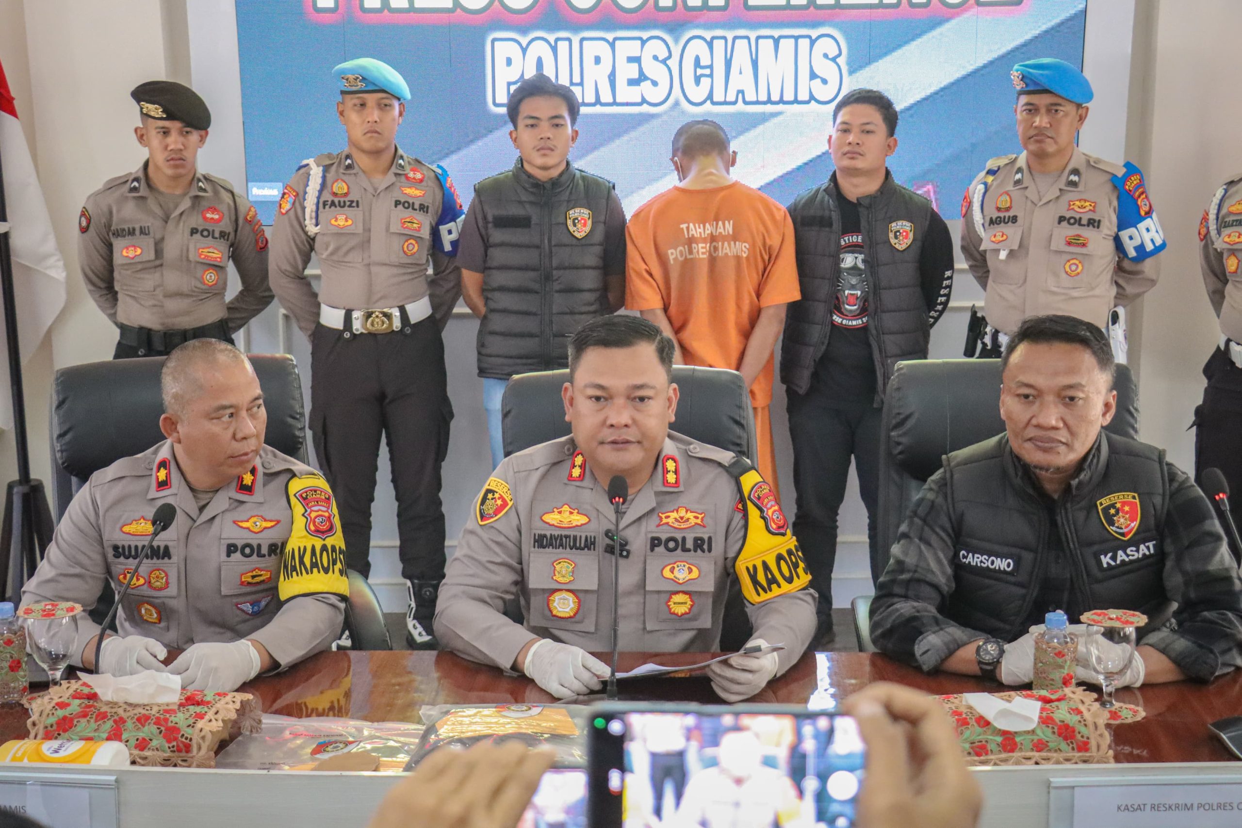 CIAMIS – Polres Ciamis kembali menunjukkan komitmennya dalam menindak tegas kejahatan terhadap anak di bawah umur. Hal ini disampaikan langsung oleh Kapolres Ciamis AKBP H. Hidayatullah, S.H., S.I.K., saat menggelar Konferensi Pers pada Rabu pagi (23/07/2025), pukul 09.00–10.00 WIB di Mako Polres Ciamis.