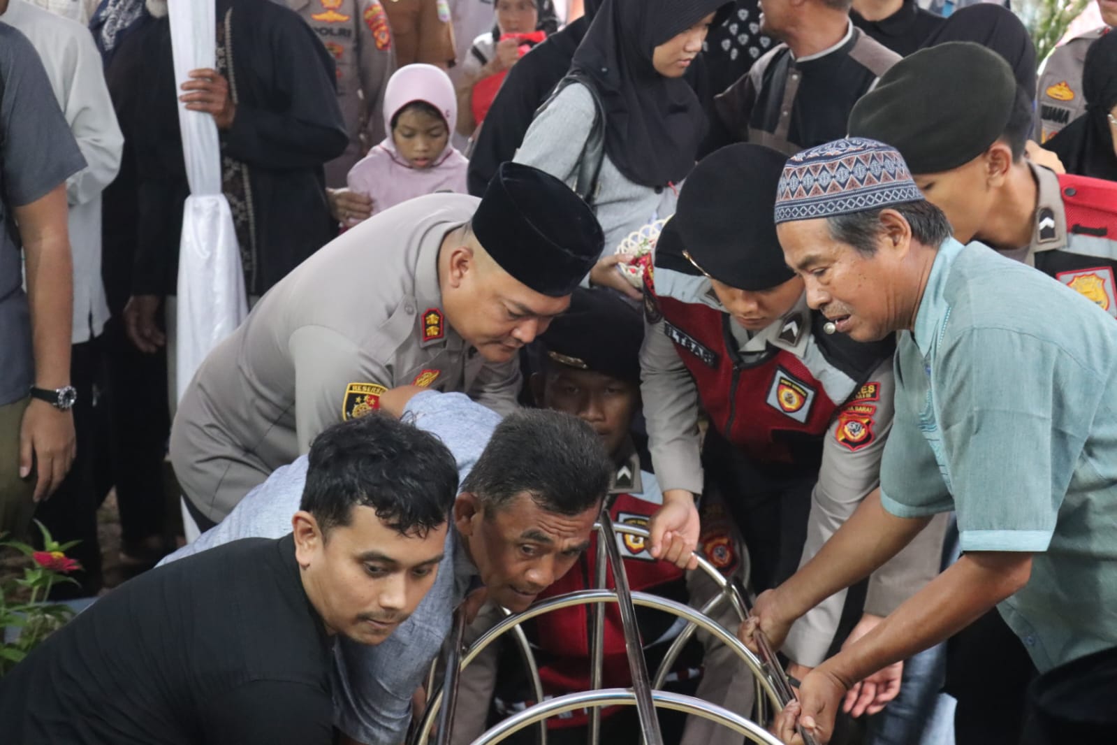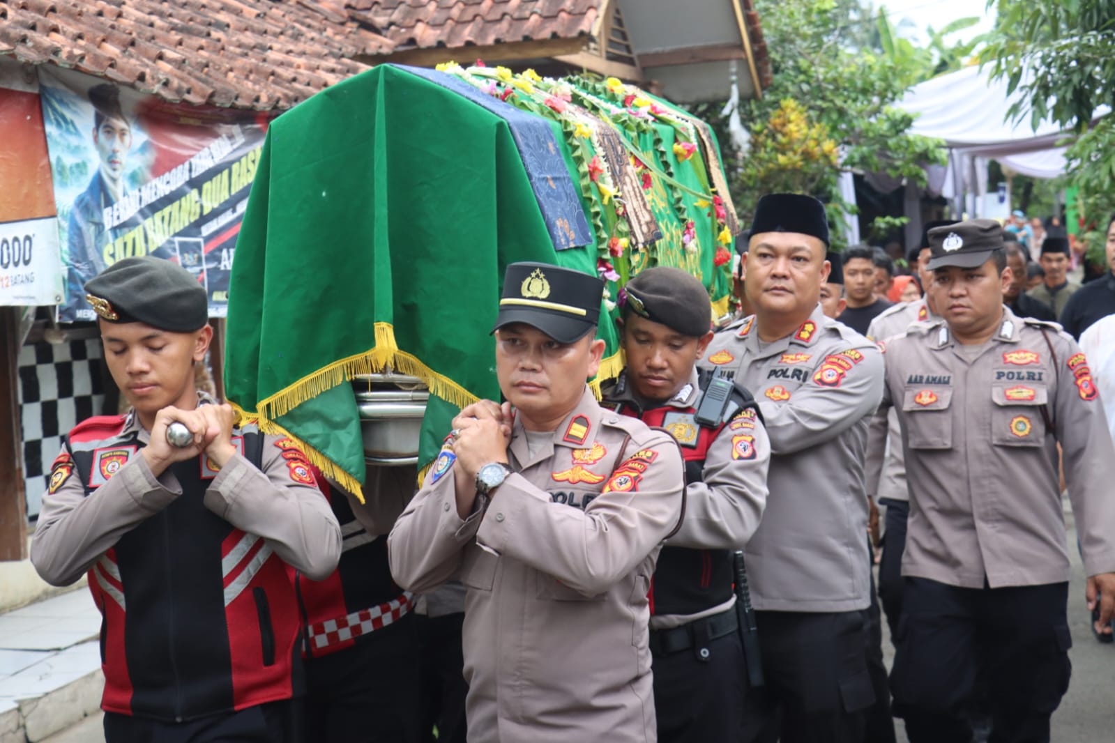 Dalam prosesi tersebut, Kapolres Ciamis didampingi Wakapolres Ciamis Kompol Sujana, S.Pd., Kabag Ops Polres Ciamis, Kapolsek Cikoneng, Kasat Intelkam, Kasat Lantas, Kasi Propam, KBO Sat Intelkam Polres Ciamis, serta dihadiri keluarga besar almarhum dan masyarakat sekitar. Pengamanan dan pengaturan kegiatan dilakukan secara humanis sehingga seluruh rangkaian acara berjalan tertib dan lancar.