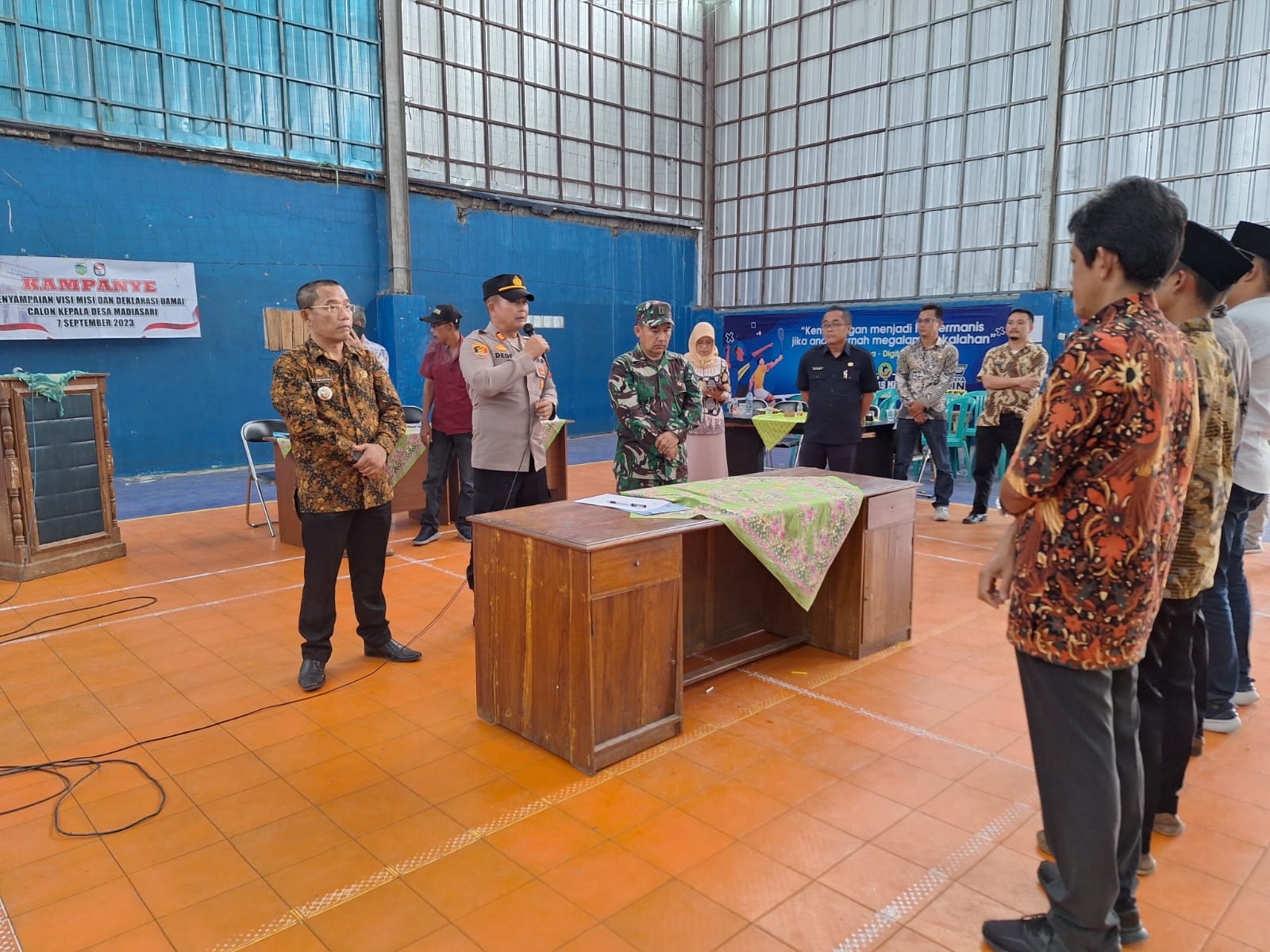Kapolres Tasikmalaya kota AKBP Sy Zainal Abidin,Sik melalui Kapolsek Cineam AKP Dede Darmawan,SH.MH mengatakan bahwa dalam rangka menciptakan situasi Kamtibmas yang aman dan kondusif di wilayah hukum Polsek Cineam terutama dalam rangka pemilihan kepala desa Madiasari Polsek Cineam bersinergi dengan Koramil Cineam dan instansi terkait melaksanakan pengamanan tahapan pemilihan kepala desa yang sudah masuk dalam tahapan kampanye penyampaian visi misi dan deklarasi damai calon kepala desa Madiasari kec Cineam kab tasikmalaya, ujarnya.