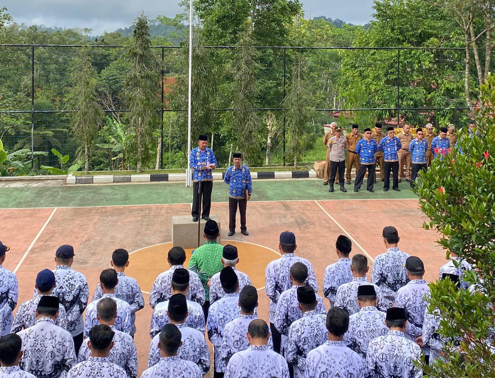 “Hari ini kami hadir dan mengikuti upacara peringatan Hari Kesehatan Nasional ke 61, Hari Guru Nasional, HUT PGRI ke 80, HUT KORPRI ke 54, Hari Aids Sedunia, Hari Anti Korupsi Sedunia tingkat kecamatan. Ini merupakan wujud nyata Polri mendukung setiap kegiatan pemerintah, dari tingkat pusat hingga daerah di dalam meningkatkan kesejahteraan masyarakat melalui kenyamanan dan ketertiban serta kondusifitas wilayah yang diberikan,” kata Iptu Hendra Widiyanto.