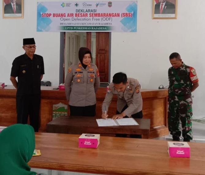 Baraknews Polres Ciamis Polda Jabar – Kapolsek Rajadesa Polres Ciamis Polda Jabar AKP Iis Yeni Idaningsih, SH., M.H., mengikuti deklarasi Stop Buang Air Besar Sembarangan (SBS) atau Open Defecation Free (ODF). Acara tersebut digelar di Desa Sinarjaya, Kecamatan Rajadesa, Kabupaten Ciamis, Jawa Barat, Senin (20/02/2023).