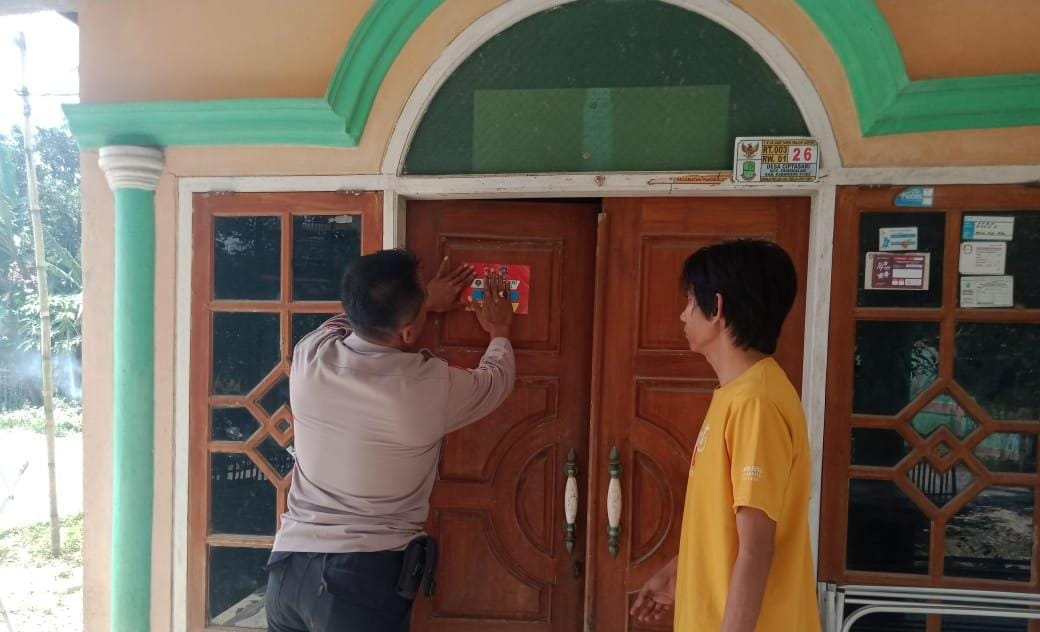 Baraknews POLRES KARAWANG – Anggota Polisi Caket Aipda Abdul Hoer menyambangi warganya guna mensosialisasikan sekaligus memasang stiker Polisi Caket, Lapor Pak Kapolres dan Lapor Pak Kapolsek di Kampung Gunung Leutik Rt 004/001 Desa Ciptasari, Pangkalan, Karawang, Sabtu (18/2/2023).