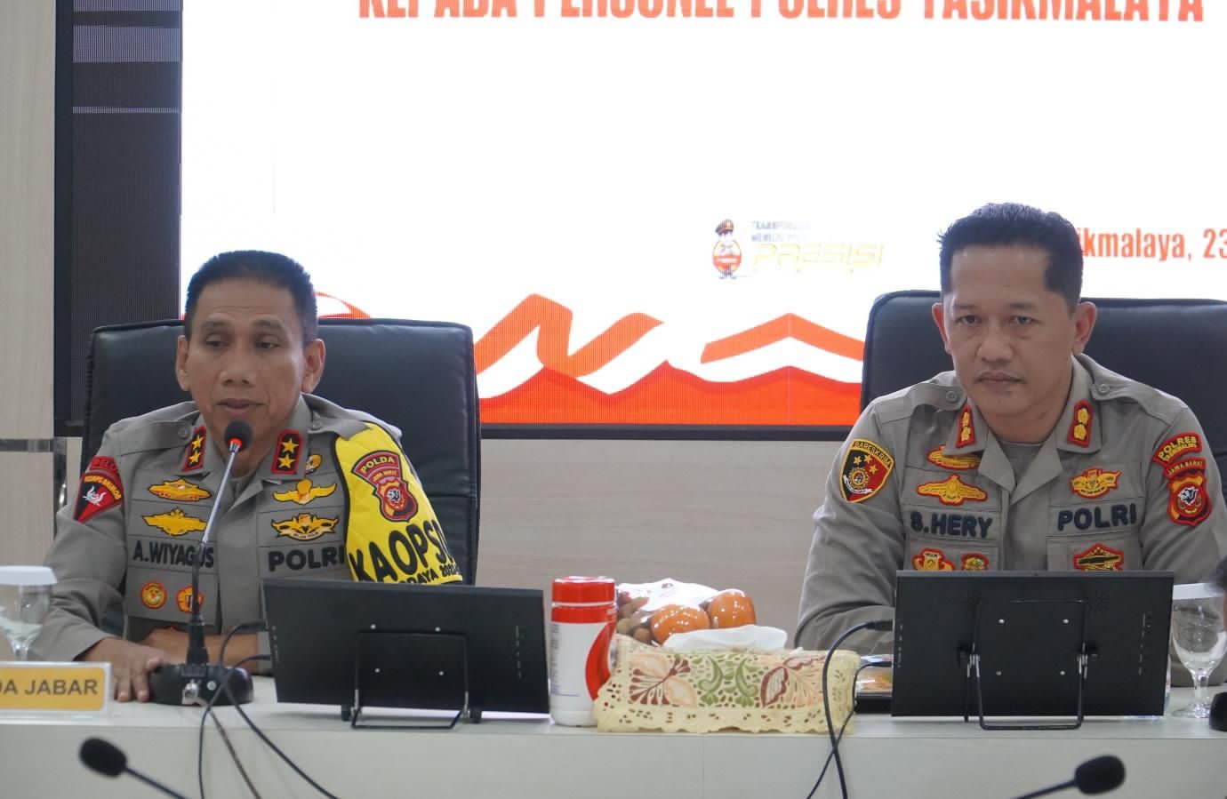 Jabar–Kapolda Jawa Barat Irjen Pol. Dr. Akhmad Wiyagus, S.I.K., M.Si., M.M., didampingi pejabat Utama Polda Jawa Barat melaksanakan kunjungan ke Polres Tasikmalaya yang dilaksanakan di Ruang PPKO Polres Tasikmalaya, Minggu (23/06/2024).