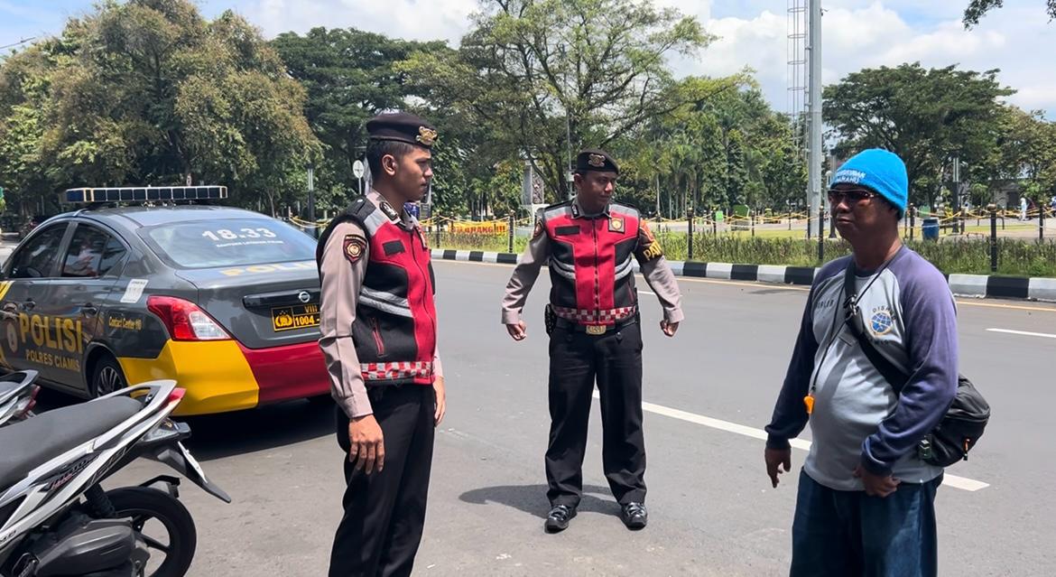 Ciamis – Dalam rangka menciptakan situasi kamtibmas yang aman dan kondusif, anggota Patroli Samapta Polres Ciamis melaksanakan kegiatan himbauan kamtibmas kepada masyarakat di wilayah hukum Polres Ciamis, tepatnya di kawasan Alun-Alun Ciamis, pada Kamis (8/5/2025).