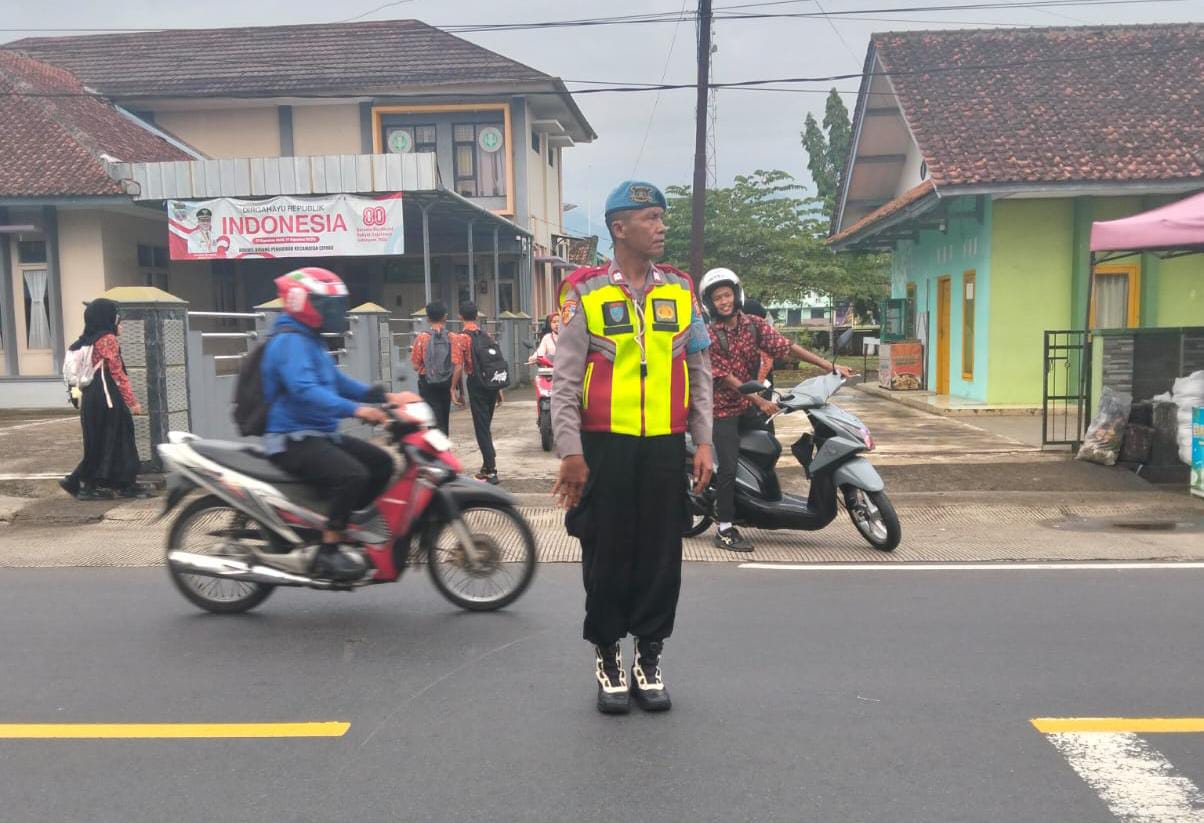 Dimana Aiptu Suharso bersiaga di jalan raya depan SMPN 1 Cipaku. Saat itu anggota turut berkoordinasi dengan petugas keamanan dan pegawai di SMP Negeri 1 Cipaku.