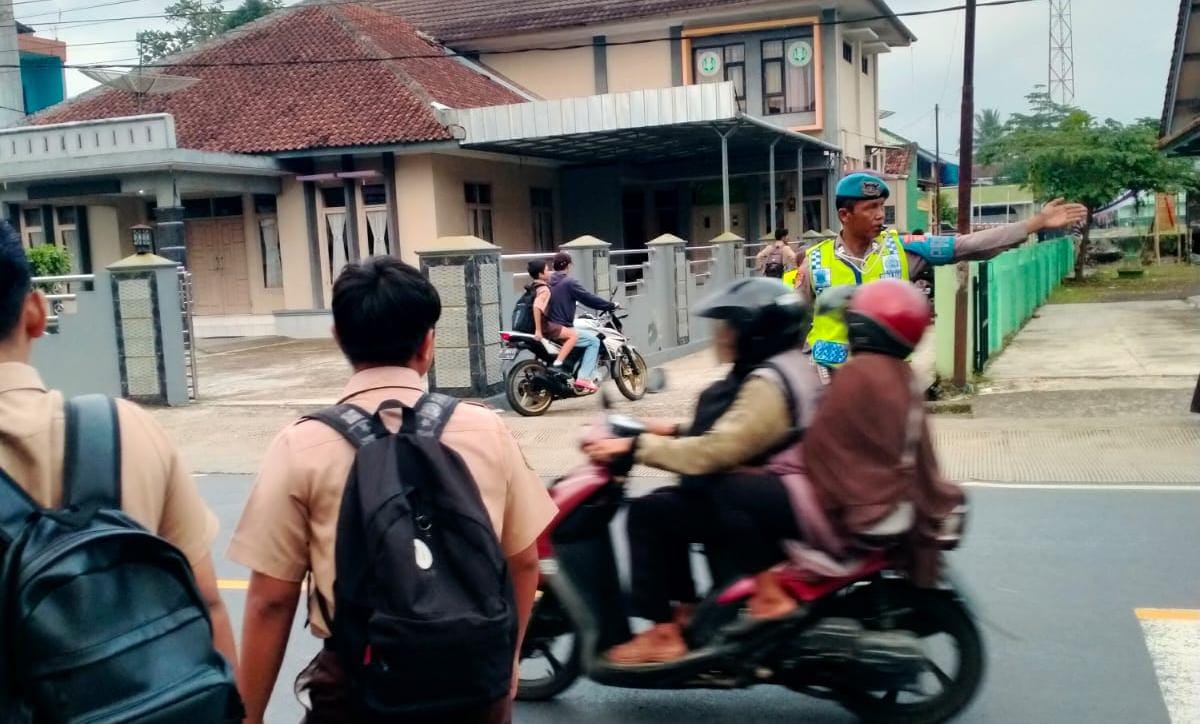 Tak hanya itu, kegiatan ini juga dilaksanakan oleh Aiptu Suharso di Jalan Raya depan SMPN 1 Cipaku. Anggota hadir memberikan pelayanan membantu masyarakat menyebrang sekaligus pengaturan lalu lintas di pagi hari.