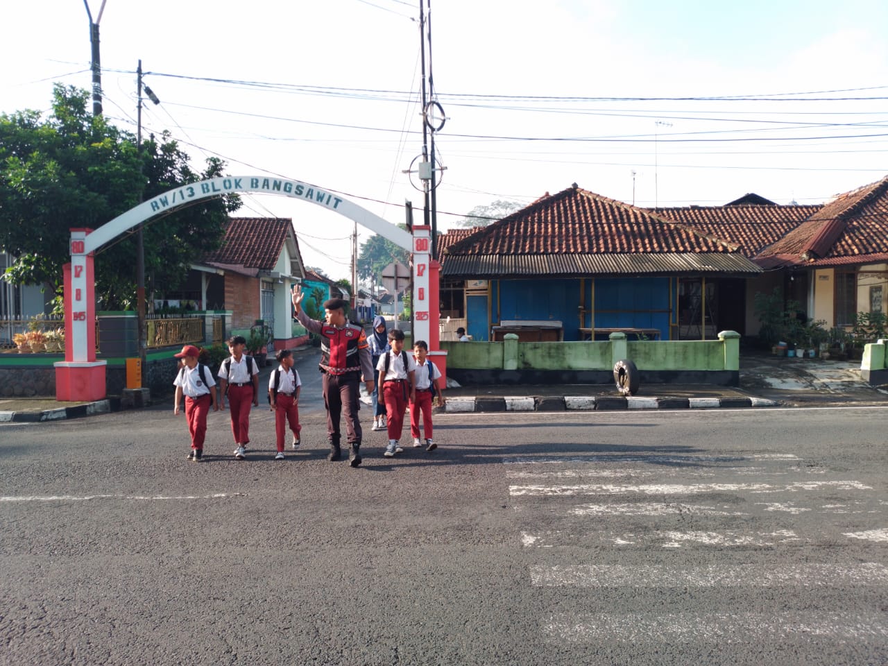 Personel melakukan pelayanan masyarakat mengatur lalu lintas serta membantu menyebrang warga. Ini dilakukan dalam rangka untuk memberika kenyamanan pengguna jalan serta meminimalisir angka fatalitas kecelakaan lalu lintas.
