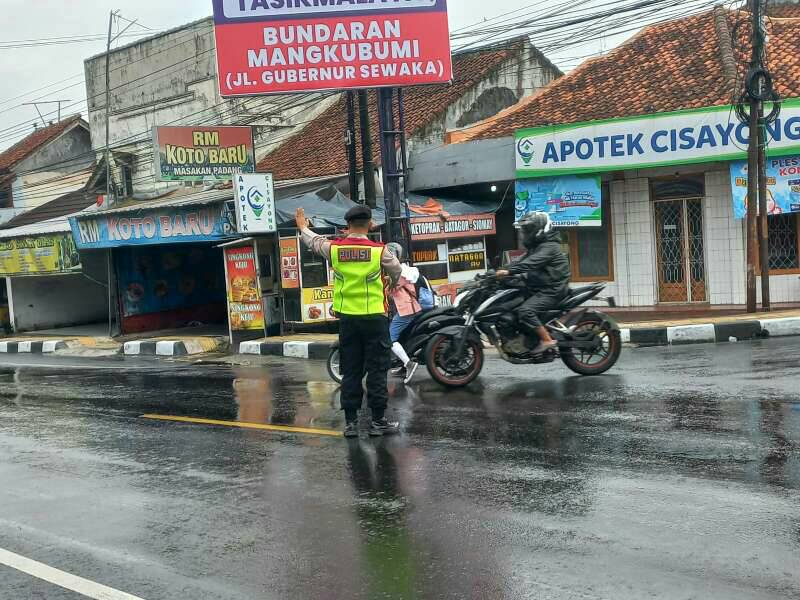 Polres Tasik Kota–Kanit samapta Polsek Cisayong Aiptu Kusdiyana melaksanakan giat rutin gatur lalin pagi agar terciptanya kamseltibcar lantas di wilayah Polsek Cisayong Polres Tasik Kota selasa (21/11/23)