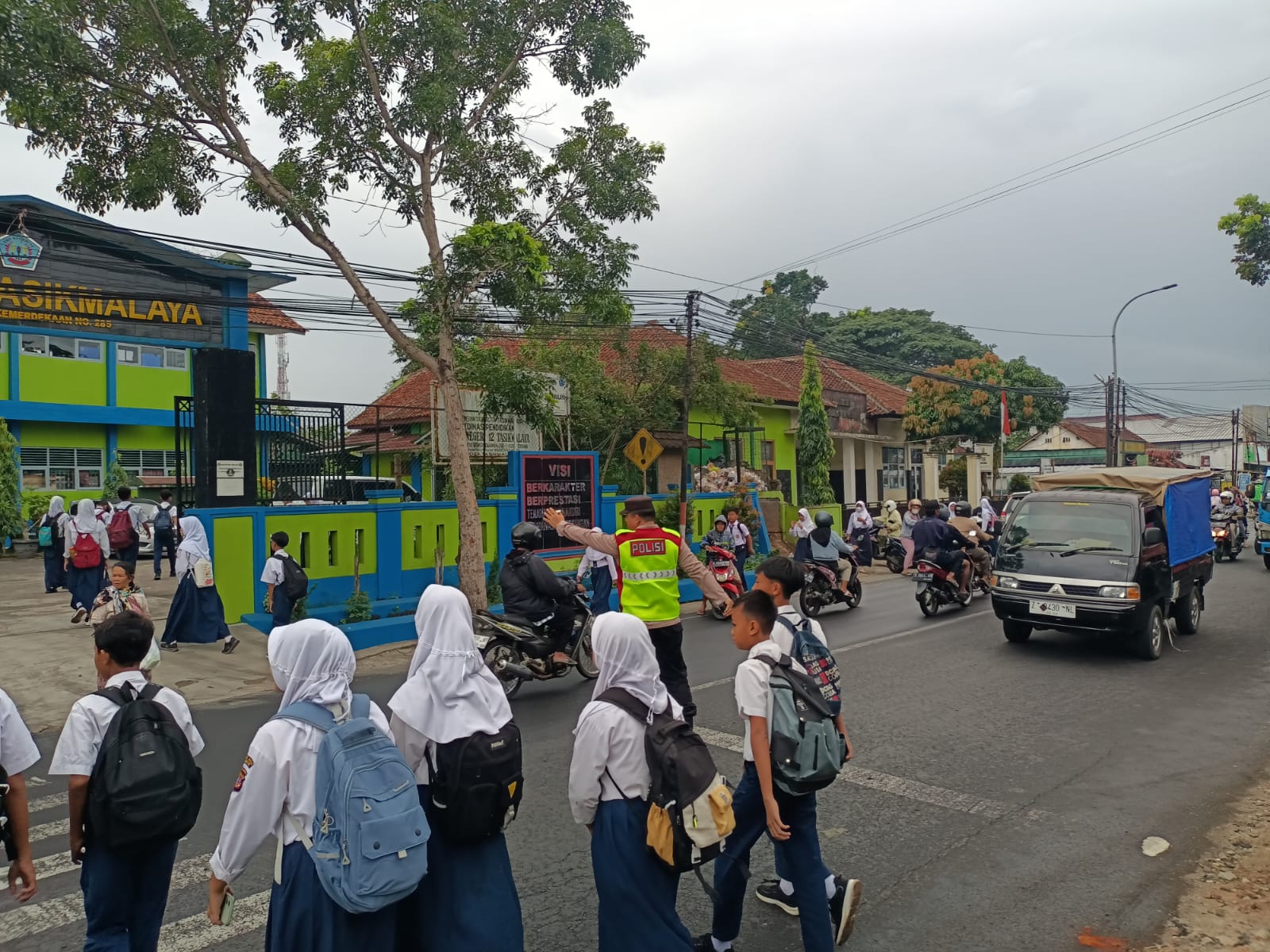 POLRES TASIK KOTA –Personel Polsek Kawalu Polres Tasik Kota menggelar kegiatan strong point dengan melakukan pengamanan dan pengaturan lalu lintas di sejumlah titik rawan kecelakaan lalu lintas, rawan kemacetan, pusat keramaian serta lokasi sekolahan.