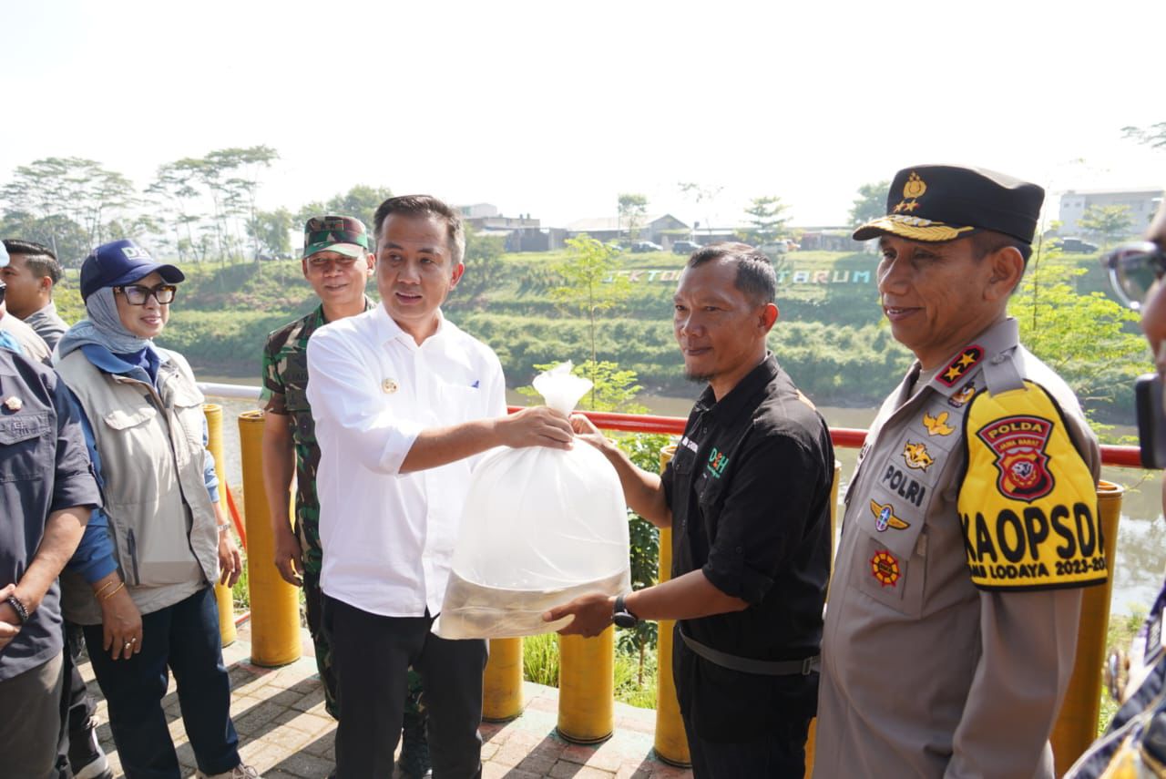 Pada kesempatan itu dilaksanakan kunjungan ke beberapa tenda UMKM dan penebaran benih ikan ke sungai Citarum.