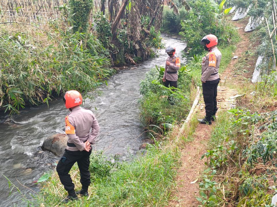 Team SAR Sat Brimob Polda Jabar Kompi 2 Batalyon B Pelopor Sat Brimob Polda Jabar melaksanakan kontrol sungai di Desa Cibodas Lembang .