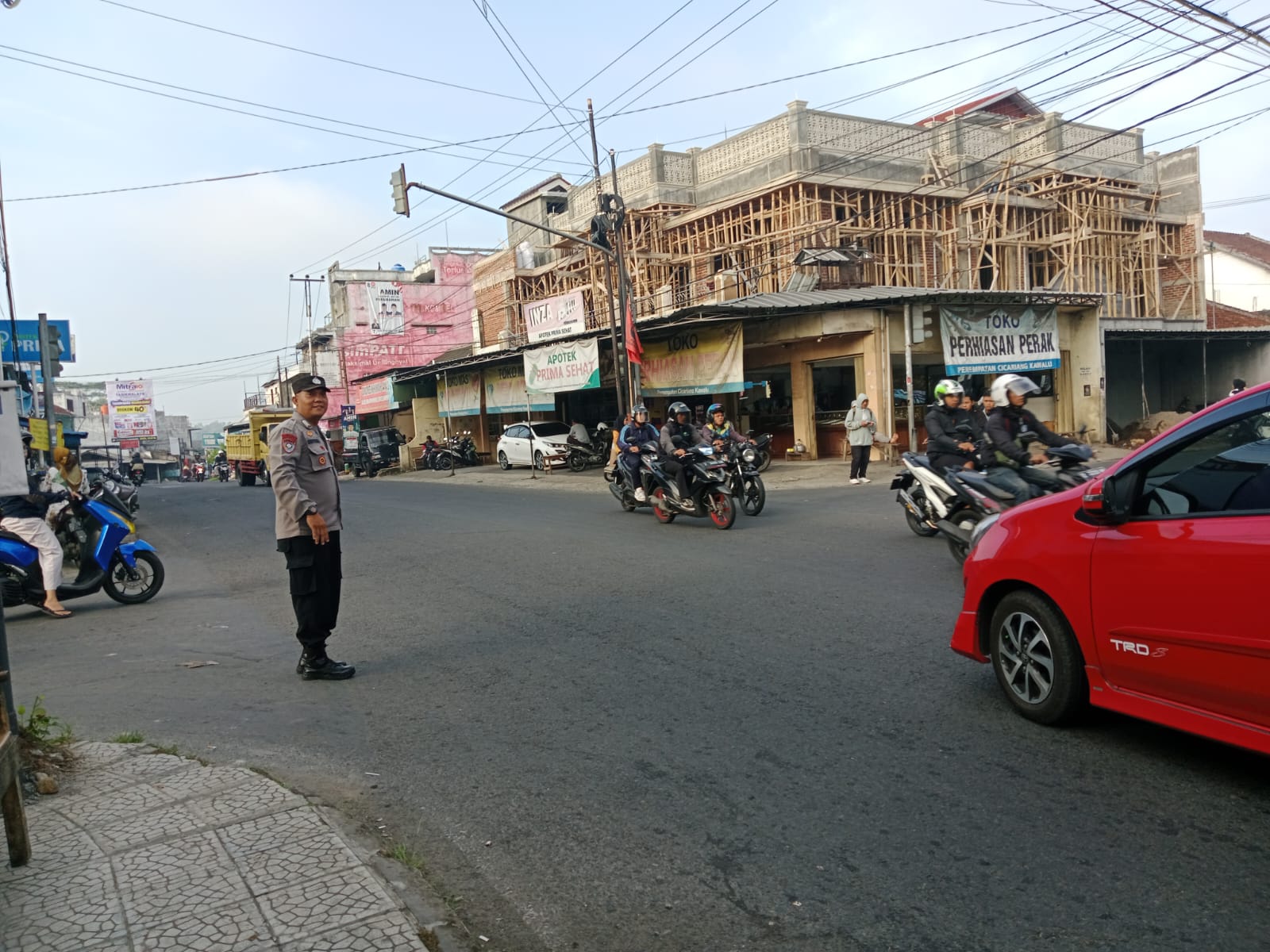 “Strong poin ini kita lakukan setiap pagi, personel melakukan pengaturan lalulintas di sejumlah titik persimpangan untuk mencegah kemacetan dan menciptakan kenyamanan kepada masyarakat,” ujar Kapolsek.