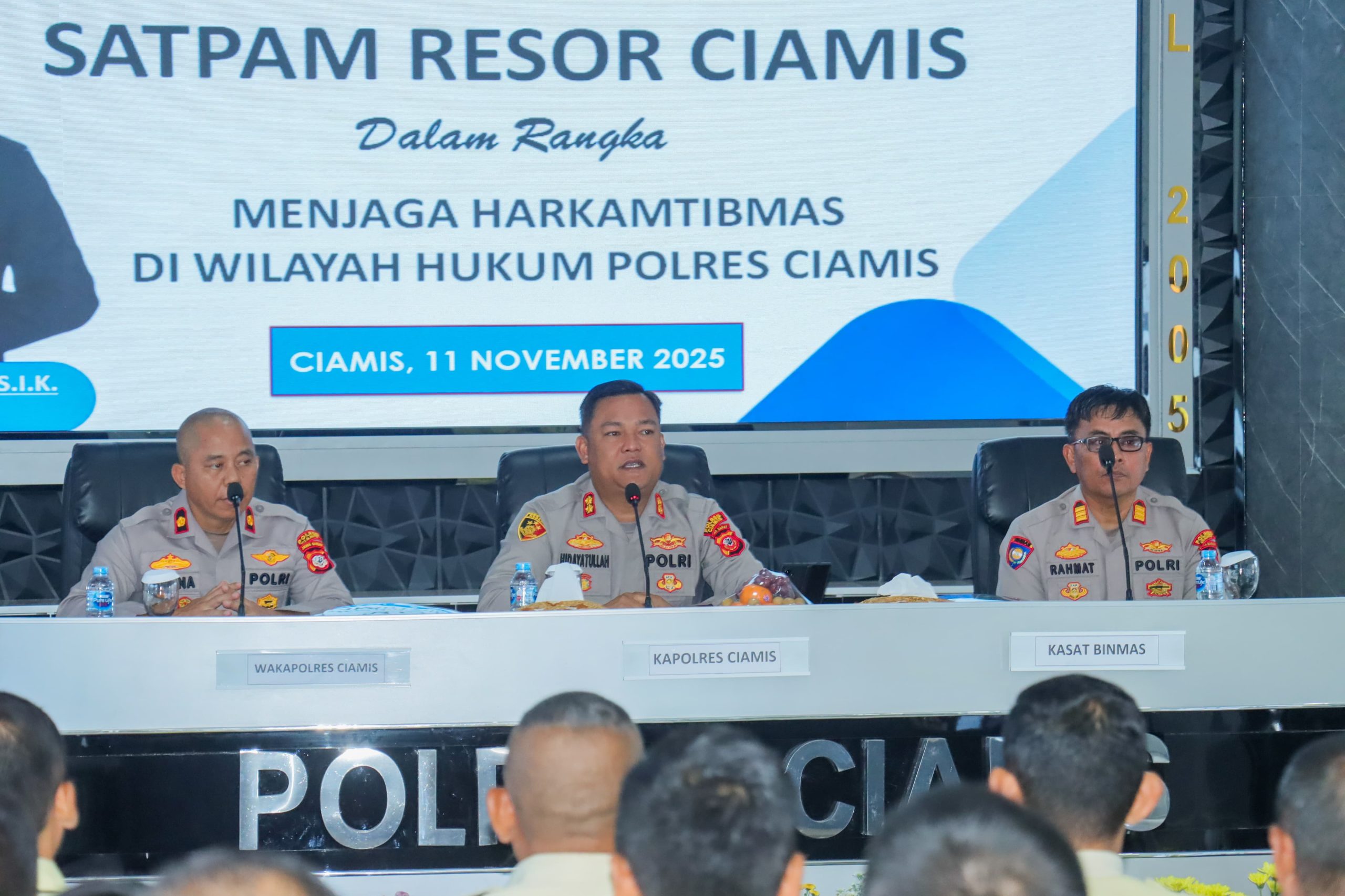 Ciamis – Polres Ciamis terus menunjukkan komitmennya dalam memperkuat sinergitas dengan satuan pengamanan (Satpam) melalui kegiatan pembinaan yang digelar di Aula Pesat Gatra Polres Ciamis. Kegiatan tersebut dihadiri oleh puluhan anggota Satpam dari berbagai instansi di Kabupaten Ciamis. Pembinaan ini dipimpin langsung oleh Kapolres Ciamis AKBP H. Hidayatullah, S.H., S.I.K., dengan dukungan dari pejabat utama Polres Ciamis serta pihak BPBD Kabupaten Ciamis yang berlangsung mulai pukul 08.30 hingga 10.30 WIB, Selasa (11/11/2025).