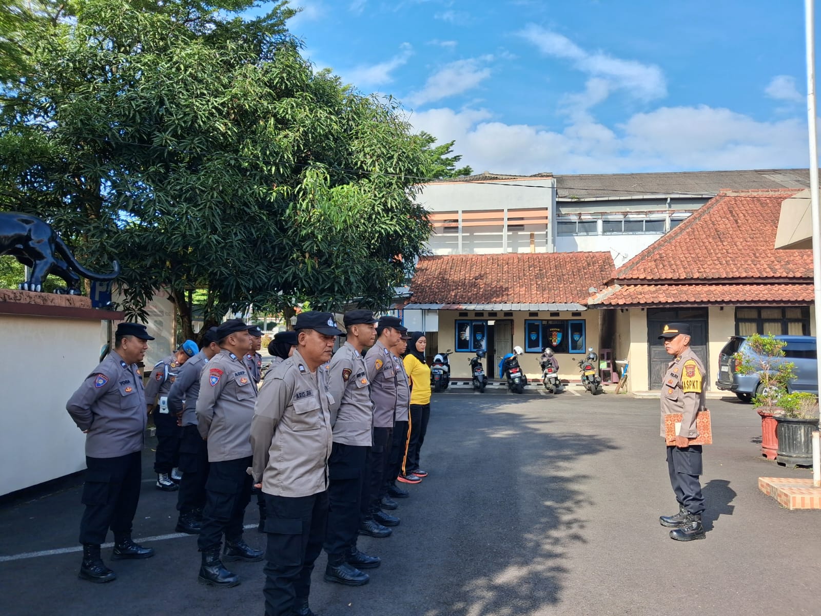 CIAMIS ~ Polsek Ciamis Polres Ciamis Polda Jabar melaksanakan apel pagi dalam rangka mengecek kesiapan personel sebelum menjalankan tugas melayani masyarakat. Apel ini berlangsung di Halaman Makopolsek Ciamis, Jalan Jenderal Sudirman No.34, Sindangrasa, Ciamis, Kabupaten Ciamis, Jawa Barat, Jumat (12/12/2025).