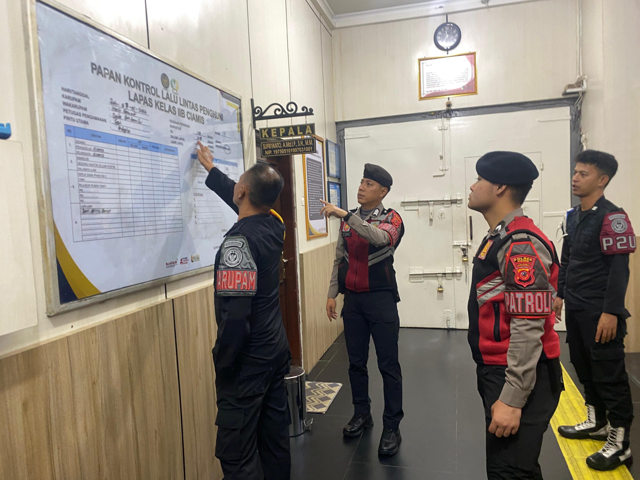 CIAMIS ~ Personel Satuan Samapta Polres Ciamis Polda Jabar mendatangi kantor pelayanan publik dan objek vital dalam rangka cipta kondisi antisipasi gangguan kamtibmas saat malam hari. Ini dilakukan untuk memberikan kenyamanan dan keamanan masyarakat. Dimana patroli kali ini dengan menyambangi Lapas Kelas II B Ciamis, Jalan Ir. H. Juanda Ciamis, Kabupaten Ciamis, Jawa Barat, Sabtu, 10 Januari 2026, malam.