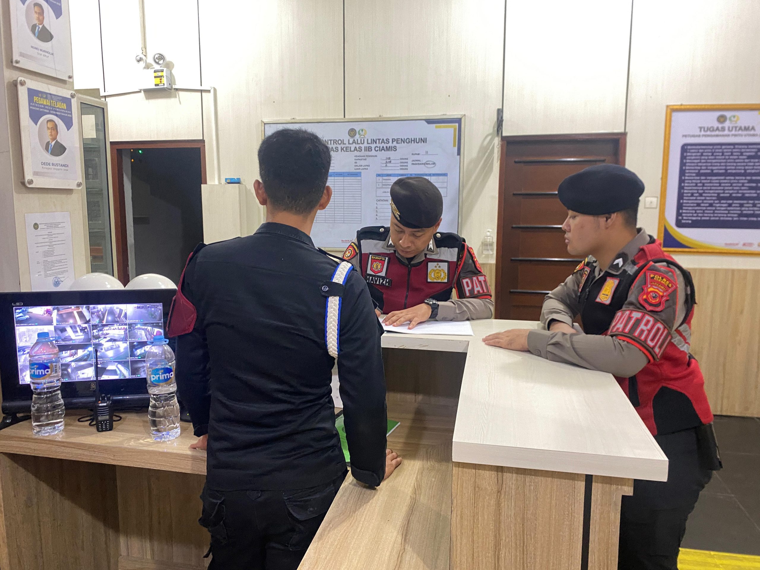 CIAMIS ~ Personel Satuan Samapta Polres Ciamis Polda Jabar mendatangi kantor pelayanan publik dan objek vital dalam rangka cipta kondisi antisipasi gangguan kamtibmas saat malam hari. Ini dilakukan untuk memberikan kenyamanan dan keamanan masyarakat. Dimana patroli kali ini dengan menyambangi Lapas Kelas II B Ciamis, Jalan Ir. H. Juanda Ciamis, Kabupaten Ciamis, Jawa Barat, Senin, 19 Januari 2026, malam.