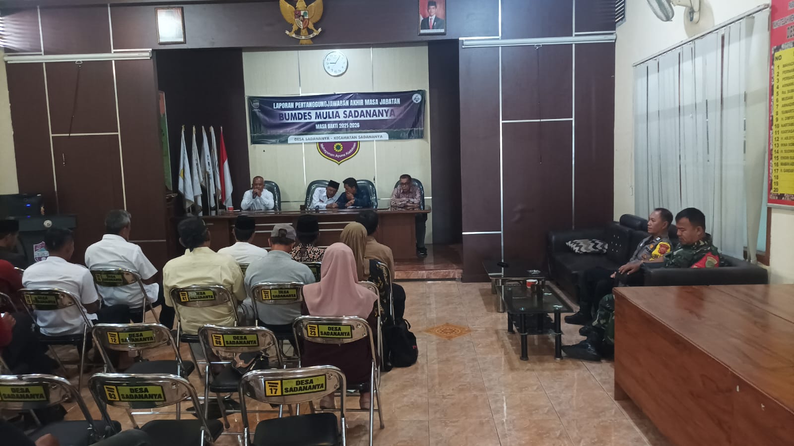 CIAMIS ~ Polsek Ciamis Polres Ciamis Polda Jabar mengikuti kegiatan musyawarah desa Laporan Pertanggung jawaban akhir BumDes Mulia Sadananya periode 2021-2026. tahun 2025. Acara tersebut berlangsung di Aula Kantor Desa Sadananya, Kecamatan Sadananya, Kabupaten Ciamis, Jawa Barat, Rabu, 15 April 2026, kemarin.