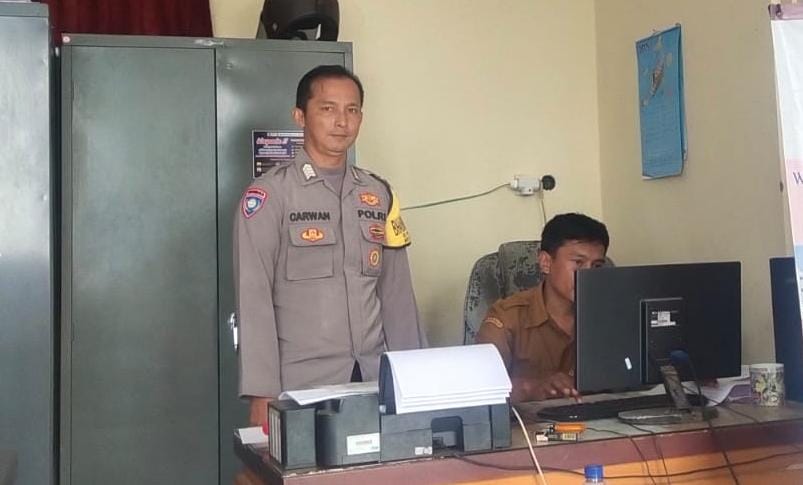 Seperti yang dilakukan Anggota Bhabinkamtibmas Desa Sukamanah Polsek Cikoneng Polres Ciamis Polda Jabar Bripka Carwan Ropiq yang mendatangi Perangkat Desa di Kantor Desa Sukamanah, Kecamatan Sindangkasih, Kabupaten Ciamis, Jawa Barat, Senin (26/5/2025).