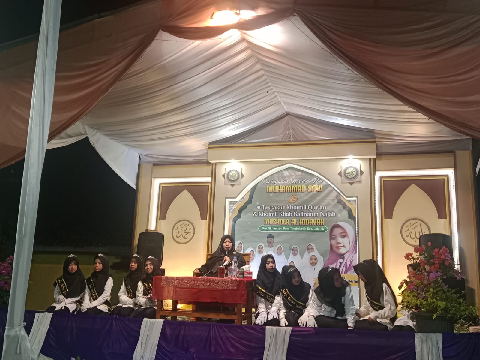 CIAMIS ~ Personel Polsek Lakbok Polres Ciamis Polda Jabar menghadiri kegiatan Tsyakur Khotmil Quran dan Peringatan Maulid Nabi Muhamad SAW 1447 Hijriyah di Desa Tambakreja. Acara itu berlangsung di halamam Mushala Al Hidayah, Dusun Sidamulya, Desa Tambakreja, Kecamatan Lakbok, Kabupaten Ciamis, Jawa Barat, Sabtu, 30 Agustus 2025, malam.