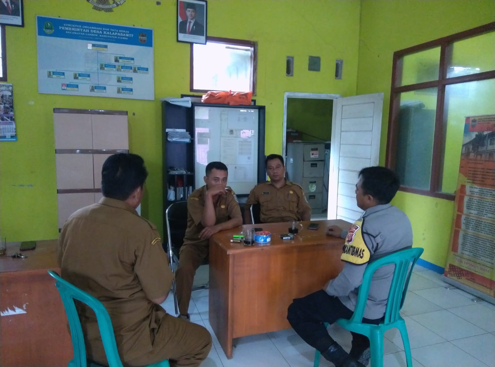 Kegiatan ini dilaksanakan oleh oleh Anggota Bhabinkamtibmas Desa Kalapasawit Polsek Lakbok Polres Ciamis Polda Jabar Bripka Dian Herdiansyah. Dimana anggota melakukan koordinasi dan komunikasi bersama Perangkat Desa Kalapasawit terkait situasi Kamtibmas di Desa Kalapasawit.