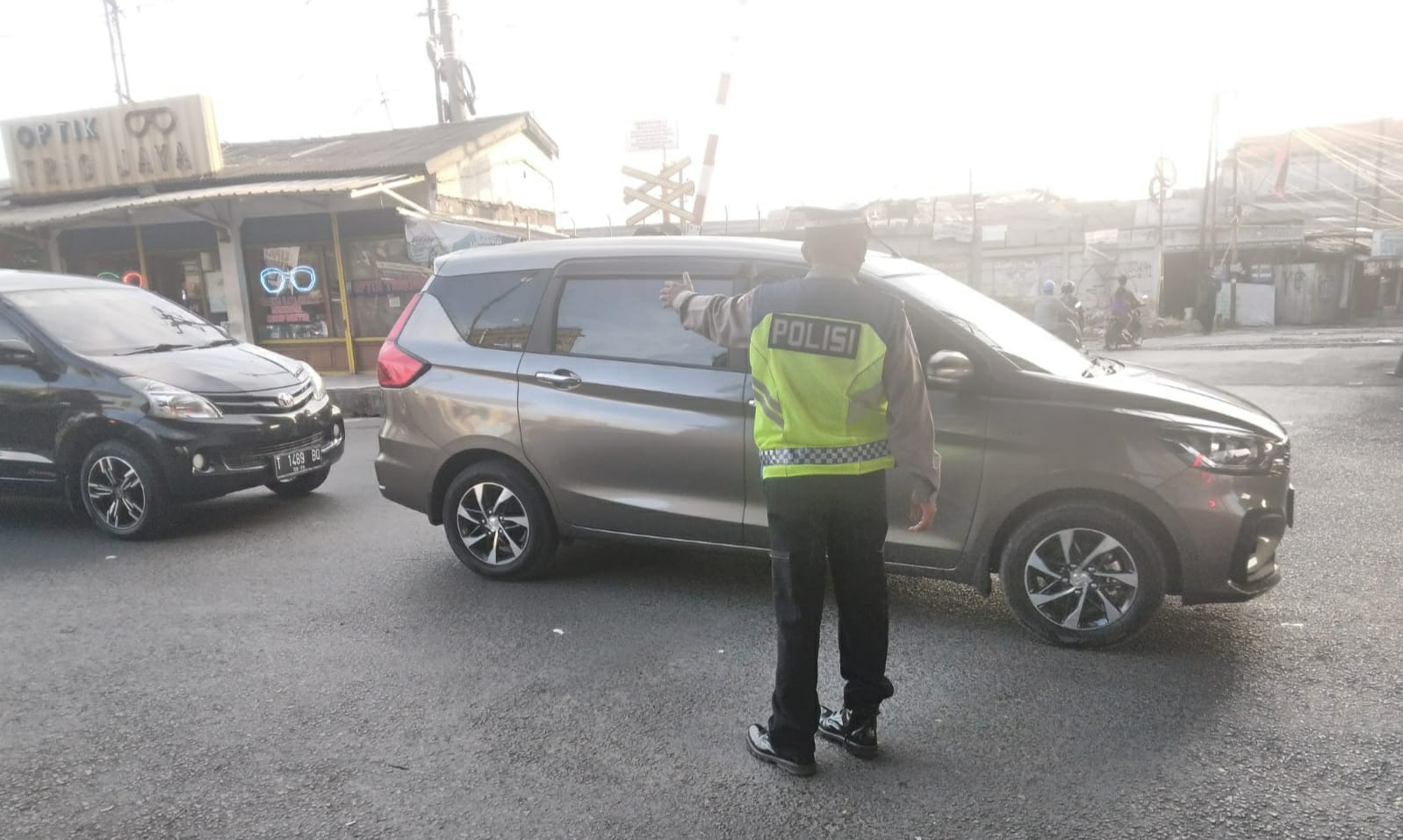 Baraknews Karawang-Dalam rangka berikan pelayanan dan rasa aman para pengendara serta pengguna jalan lainya personil lantas Połsek Cikampek Aiptu Sahidi Gatur Lalin sore di depan pasar anyar Cikampek ,Senin 12 Juni 2023 .
