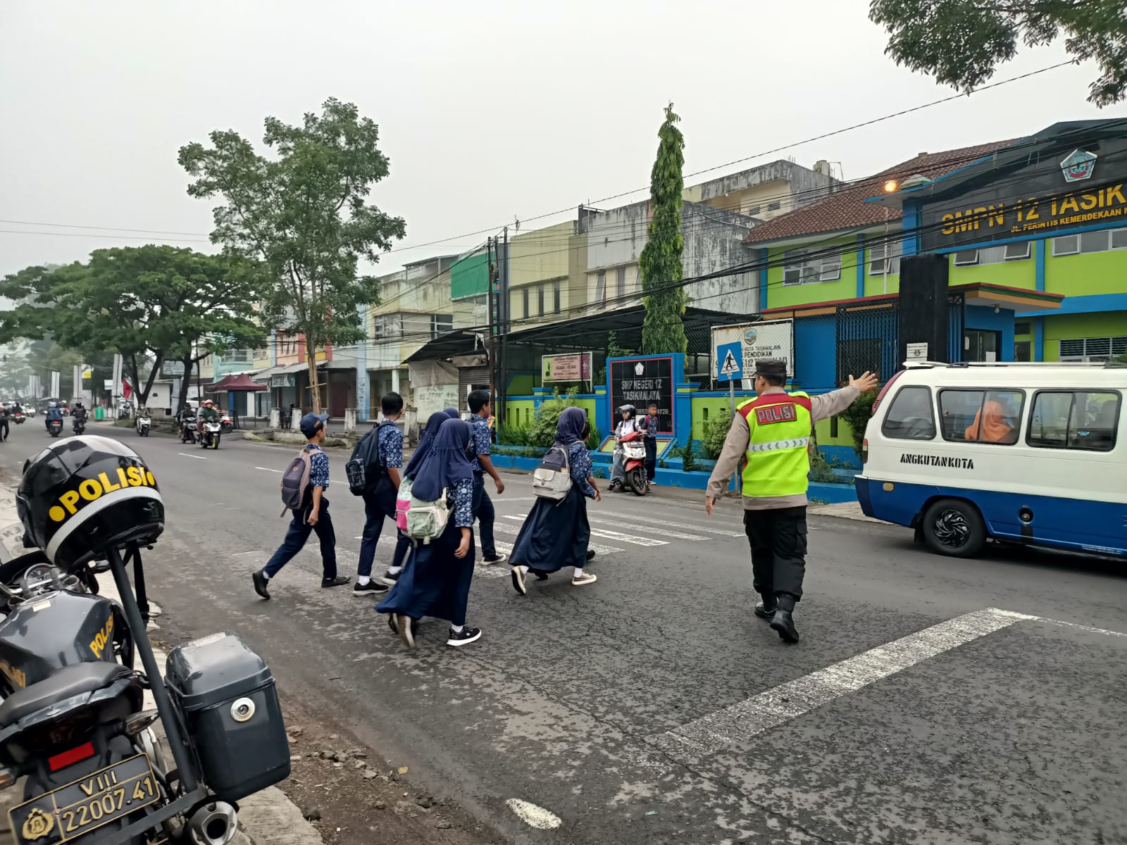 POLRES TASIK KOTA –Personel Polsek Kawalu Polres Tasik Kota menggelar kegiatan strong point dengan melakukan pengamanan dan pengaturan lalu lintas di sejumlah titik rawan kecelakaan lalu lintas, rawan kemacetan, pusat keramaian serta lokasi sekolahan.