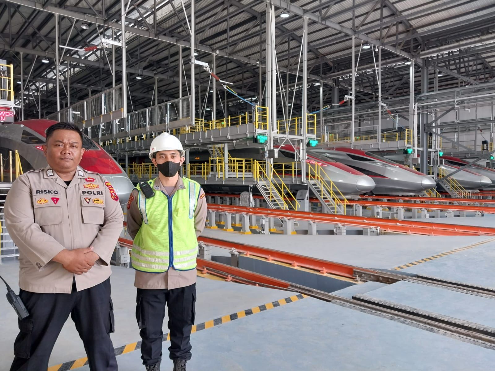 Baraknews Jabar–Pengamanan di lokasi proyek strategis Nasional kereta cepat Jakarta Bandung Polda Jabar melakukan pengamanan Testing dan Commissioning proyek kereta Cepat Jakarta Bandung. Sabtu (3/06/2023).
