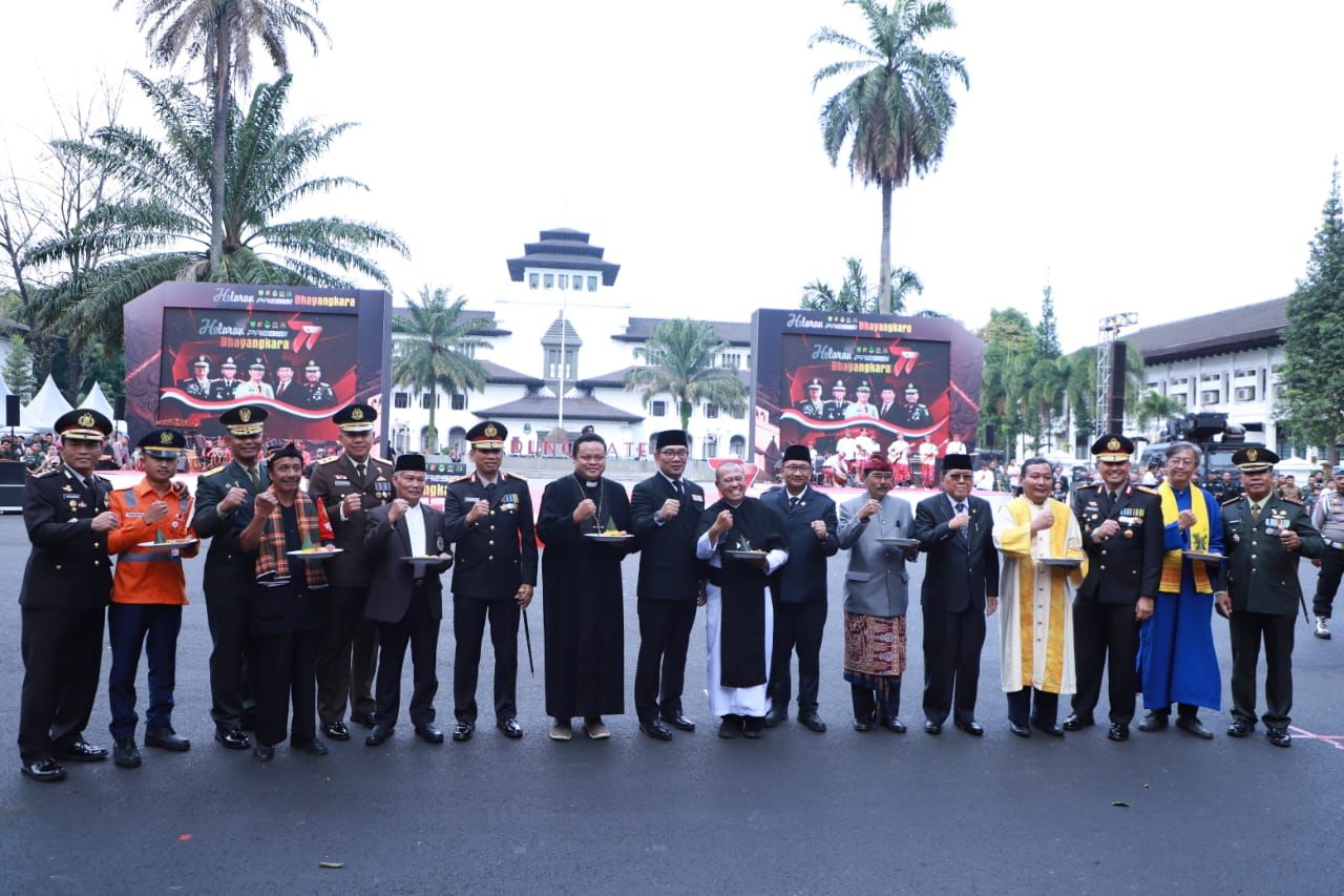 Dalam sambutannya Gubernur Jawa Barat H. Mochamad Ridwan Kamil, S.T., M.U.D. Mengucapkan Selamat Hari Bhayangkara ke 77 untuk Kepolisan Negara Republik Indonesia.