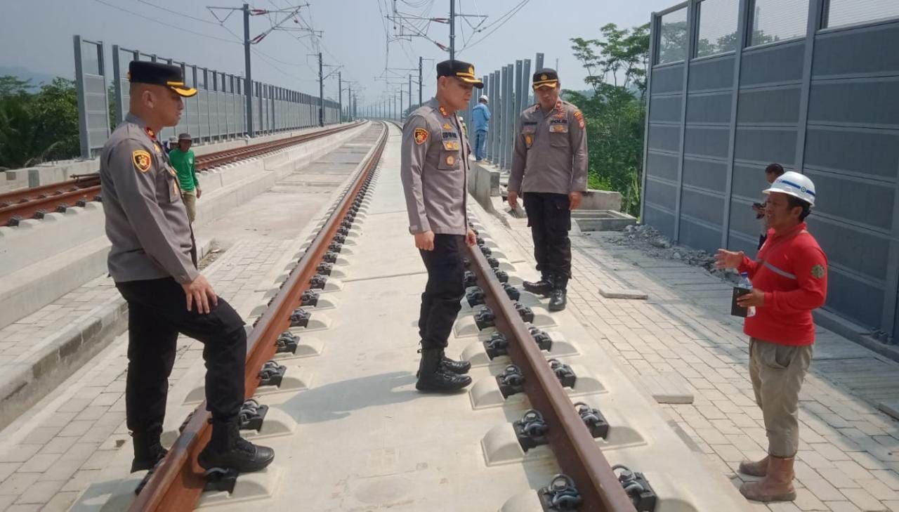 Jabar–Pengamanan di lokasi proyek strategis Nasional kereta cepat Jakarta Bandung Polda Jabar melakukan pengamanan Testing dan Commissioning proyek kereta Cepat Jakarta Bandung. Kamis (20/07/2023).