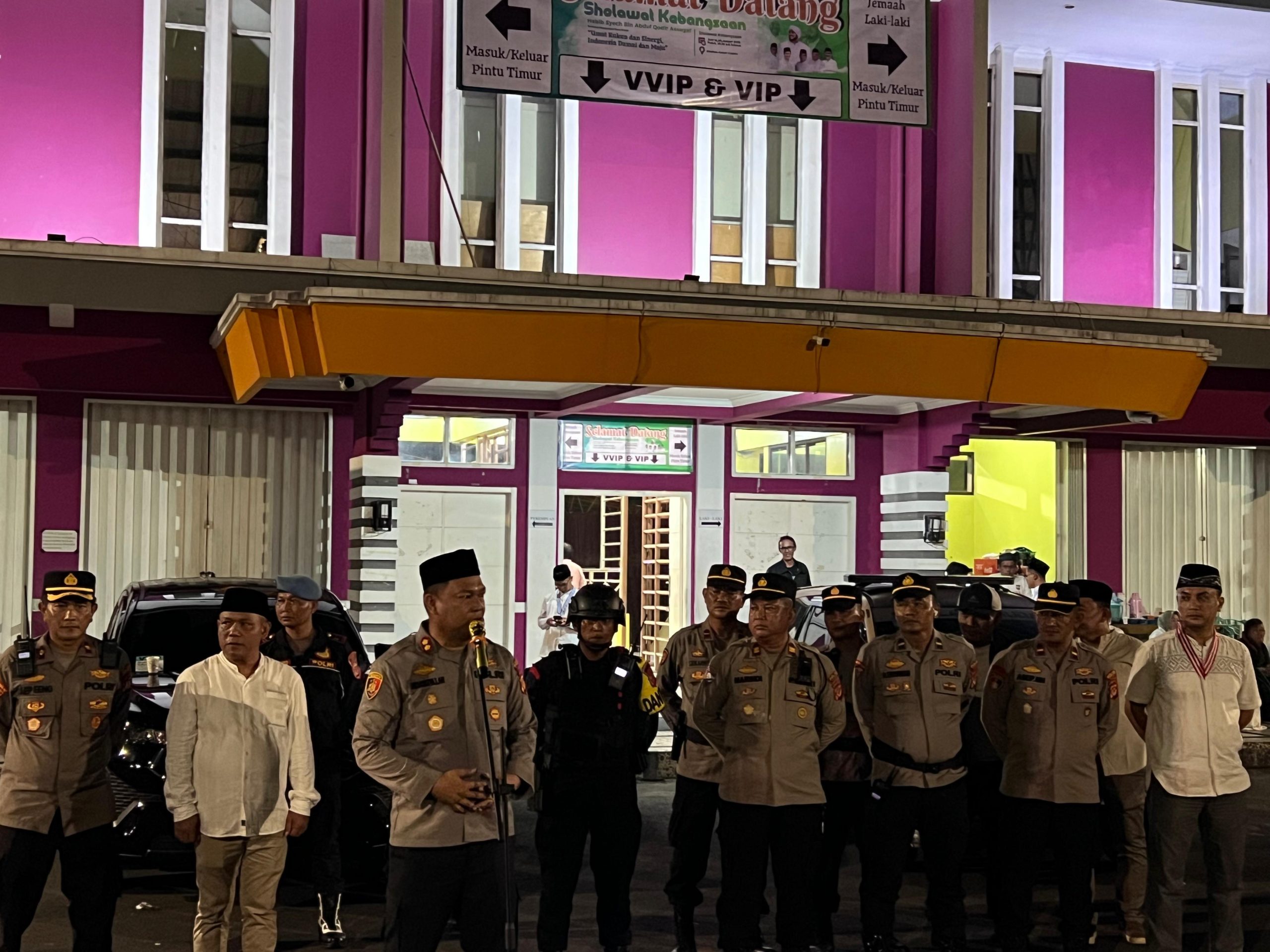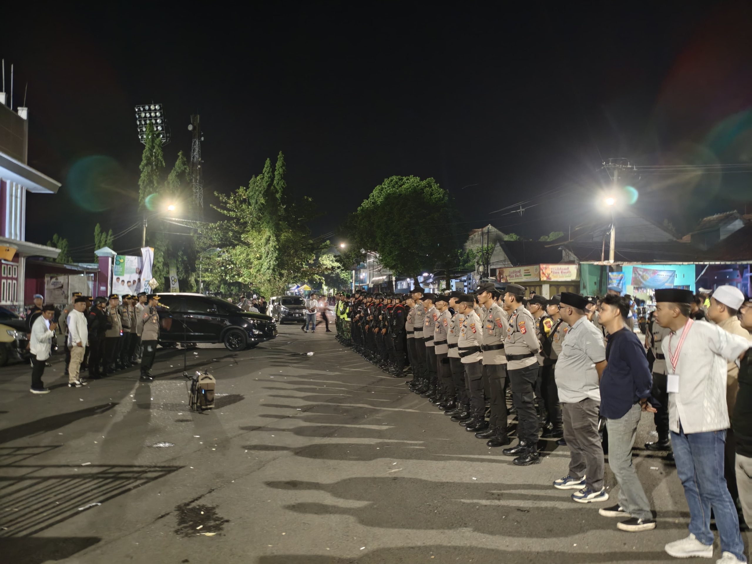 CIAMIS ~ Polres Ciamis Polda Jabar melaksanakan pengamanan kegiatan masyarakat di Kabupaten Ciamis. Kegiatan bertajuk Sholawat Kebangsaan bersama Habib Syech Bin Abdul Qodir Assegaf ini berlangsung di Stadion Galuh Ciamis, Ciamis, Kabupaten Ciamis, Jawa Barat, Jumat, 9 Januari 2026, malam.