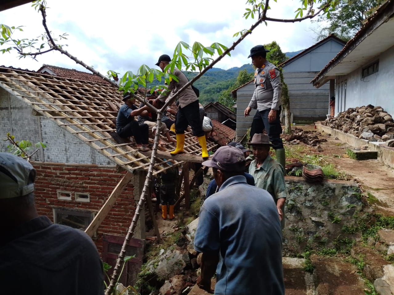 Mengetahui kejadian tersebut, jajaran Polsek Panjalu bersama pemerintah kecamatan, perangkat desa, serta warga segera bergerak menuju lokasi pada pagi harinya. Dipimpin langsung oleh Kapolsek Panjalu AKP Yaya Koswara, kegiatan gotong royong dilakukan untuk menyingkirkan material tanah dan lumpur yang menimbun rumah korban serta membersihkan akses jalan di sekitar lokasi. Kehadiran anggota kepolisian di tengah masyarakat menjadi bentuk nyata sinergi dan kepedulian aparat terhadap keselamatan warga.