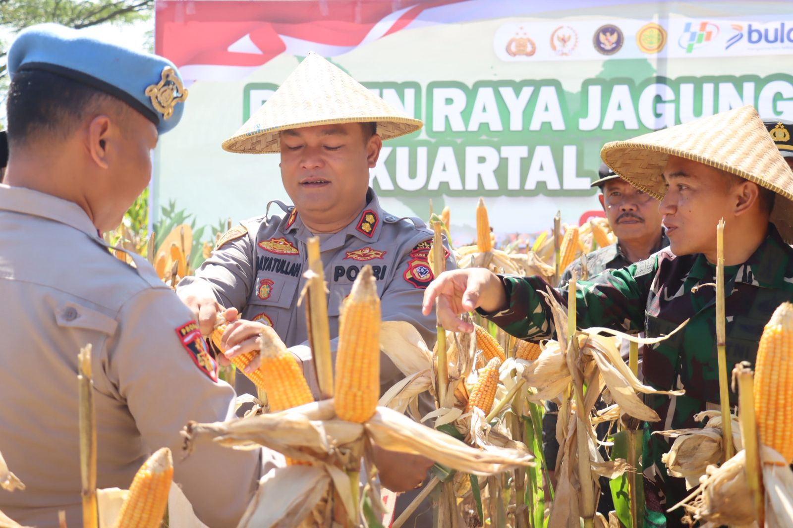 Kegiatan kemudian dilanjutkan dengan panen jagung secara simbolis di lahan Desa Sukamulya Kecamatan Baregbeg dengan luas lahan sekitar 1,5 hektare dan hasil panen kurang lebih mencapai 5 ton. Panen tersebut menjadi bukti konkret bahwa kolaborasi antara Polri, pemerintah daerah, dan masyarakat mampu menghasilkan dampak positif bagi ketahanan pangan dan ekonomi lokal.