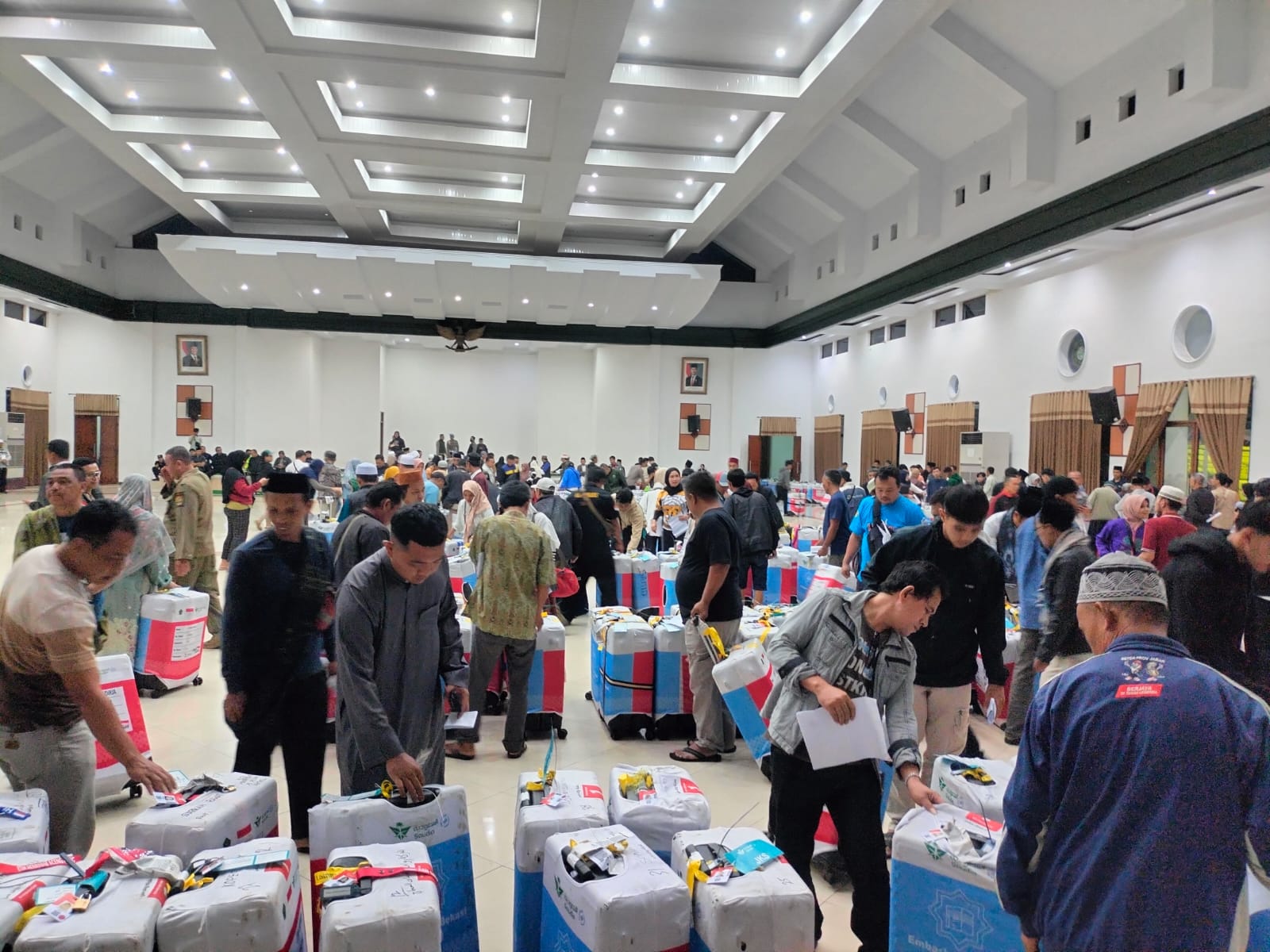 CIAMIS ~ Polres Ciamis Polda Jabar melaksanalan pengamanan menyambut kepulangan jamaah haji asal Ciamis. Para personel disiagakan dilokasi kedatangan Jamaah Haji Kolter 48 dan 49 di Kawasan Islamic Center Ciamis, Kabupaten Ciamis, Jawa Barat, Sabtu, 5 Juli 2025, malam.