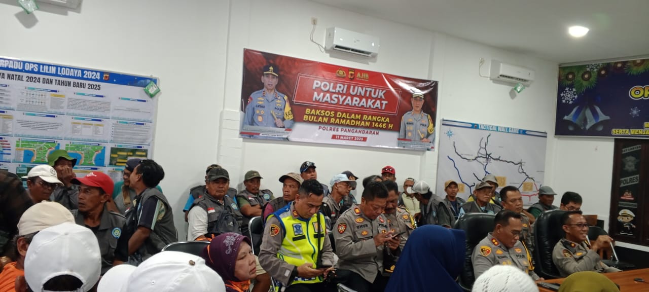 Pangandaran–Polres Pangandaran menggelar bakti sosial dalam rangka bulan suci Ramadhan 1446 H/2025 di Bundaran Marlin TIC Pangandaran pada Selasa (11/03/2025).