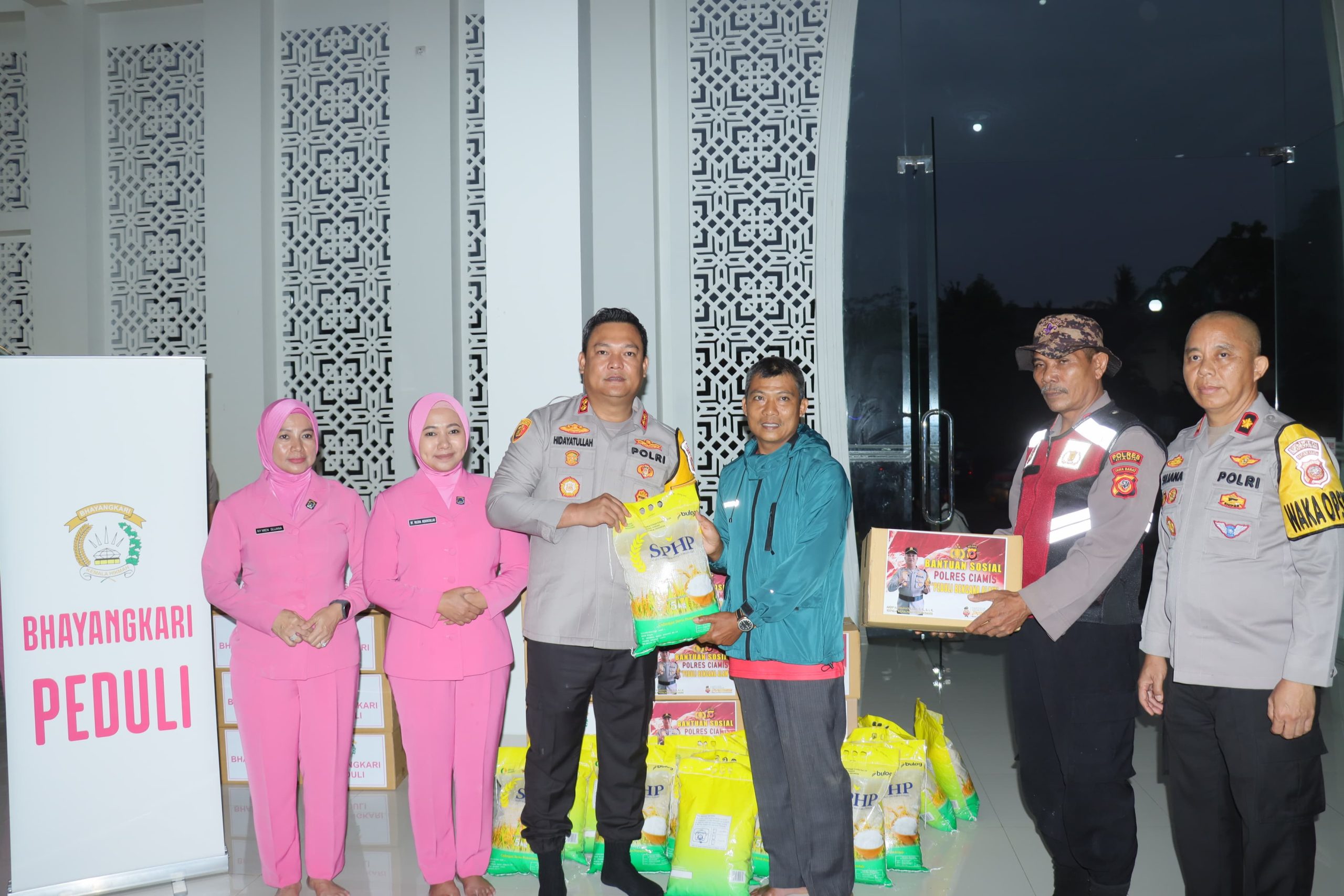 Ciamis – Kapolres Ciamis AKBP H. Hidayatullah, S.H., S.I.K., didampingi Ketua Bhayangkari Cabang Ciamis, melaksanakan kunjungan sekaligus bakti sosial ke lokasi bencana alam banjir di Dusun Kubangpari, Desa Bangunsari, Kecamatan Pamarican, Kabupaten Ciamis, pada Selasa (10/02/2026).