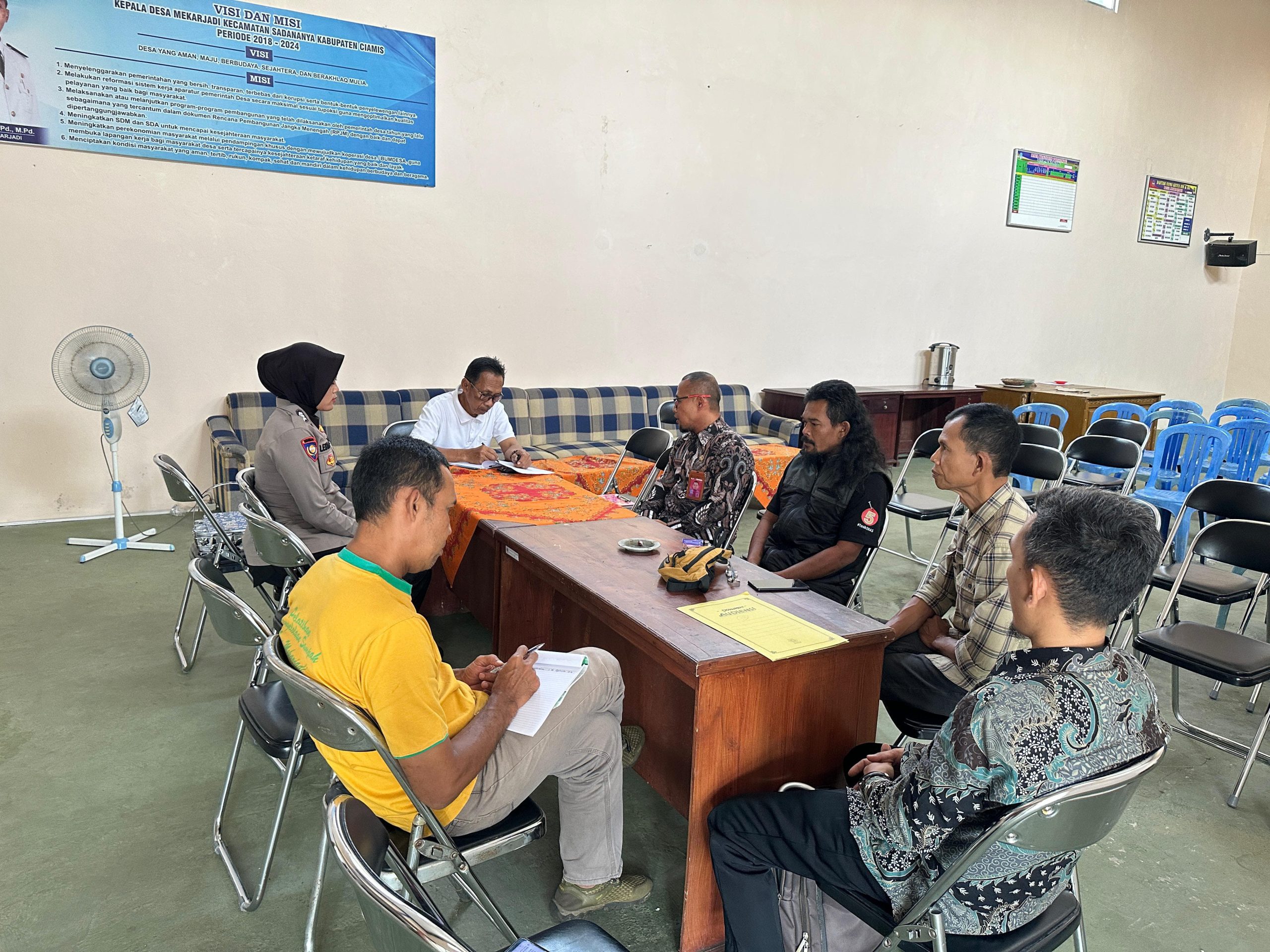 Audiensi ini dihadiri oleh empat orang perwakilan masyarakat yang dikoordinatori oleh Nurdin. Mereka menyampaikan aspirasi terkait persoalan sampah di lingkungan yang dinilai belum mendapatkan penanganan optimal. Warga mengeluhkan kurangnya fasilitas pengelolaan sampah serta berharap adanya edukasi berkelanjutan untuk meningkatkan kesadaran masyarakat akan pentingnya menjaga kebersihan lingkungan. Selain itu, mereka juga meminta dukungan dari Pemerintah Desa Mekarjadi dalam bentuk solusi nyata guna mengatasi permasalahan tersebut.