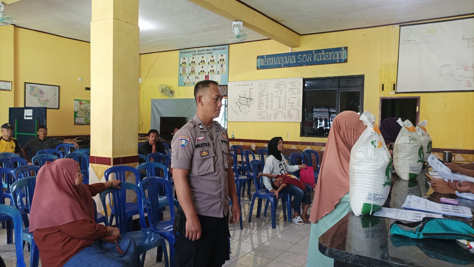 CIAMIS ~ Personel Polsek Ciamis Polres Ciamis Polda Jabar melaksanakan pengamanan kegiatan penyaluran bantuan beras cadangan dari Pemerintah di Desa Imbanagara. Pengamanan ini dilaksanakan di Aula Desa Imbanagara, Kecamatan Ciamis, Kabupaten Ciamis, Jawa Barat, Rabu (21/2/2024).