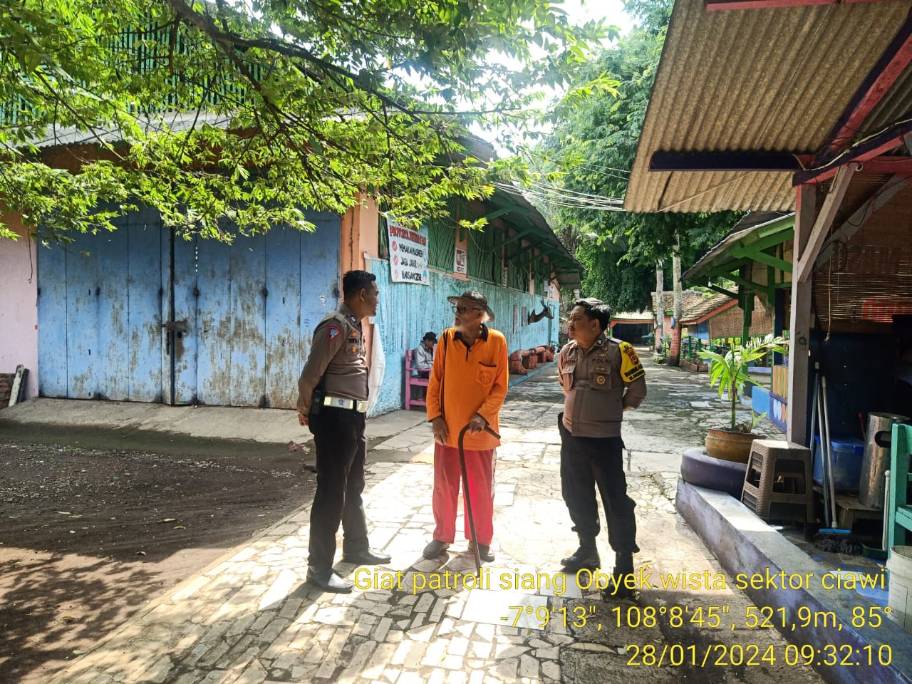 Pada kesempatan tersebut kegiatan Patroli dilaksanakan oleh Aiptu Subiantoro bersama Bripka Gresta dengan sasaran ke obyek wisata “Kolam Renang Tirta Ciawi” yang di kelola oleh Sdr.H. DEDI dan Obyek wisata “Puncak Pelita” di kelola oleh Karang Taruna Desa Kertamukti,Patroli dilaksanakan untuk mencegah terjadinya C3 (Curat, Curas, & Curanmor) serta cegah gangguan kamtibmas lainnya di Wilayah Hukum Polsek Ciawi, Minggu ( 28 / I /2024)