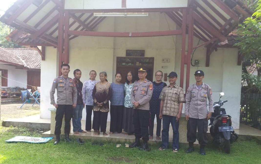 CIAMIS ~ Polres Ciamis Polda Jabar melaksanakan Pengamanan Kebaktian di Geraja wilayah hukum Polsek Cisaga dalam rangka cipta kondisi antisiapsi gangguan kamtibmas. Monitoring ini dilaksanakan di sekitar Gereja Kristen Pasundan, Dusun Cinyeunang Rt.023 Rw.013, Desa Sidamulih, Kecamatan Cisaga, Kabupaten Ciamis, Jawa Barat, Minggu (27/7/2025).