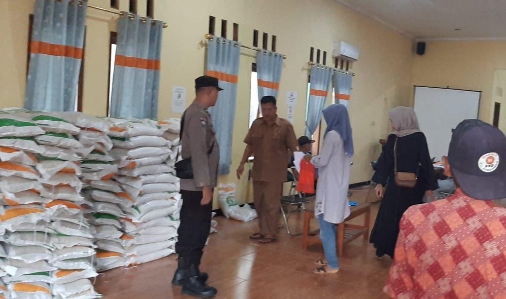 CIAMIS ~ Personel Polsek Cisaga Polres Ciamis Polda Jabar melaksanakan pengamanan kegiatan penyaluran bantuan beras cadangan dari Pemerintah di Desa Cisaga. Pengamanan ini dilaksanakan di Aula Desa Cisaga, Kecamatan Cisaga, Kabupaten Ciamis, Jawa Barat, Selasa (25/6/2023).