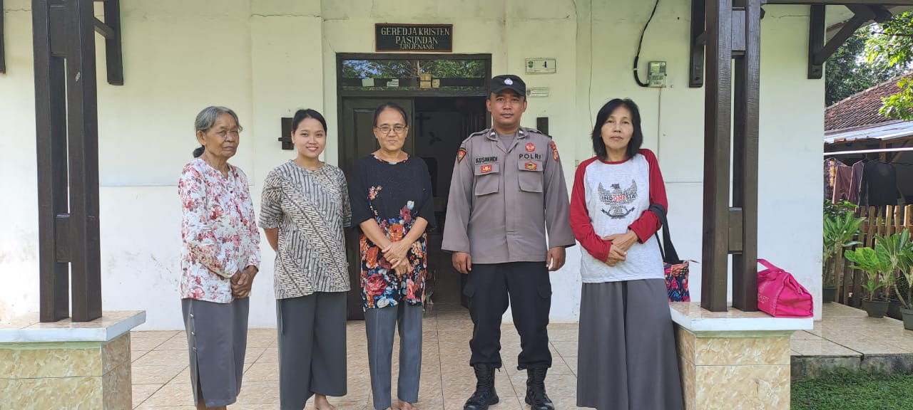 CIAMIS ~ Polres Ciamis Polda Jabar melaksanakan Pengamanan Kebaktian di Geraja wilayah hukum Polsek Cisaga dalam rangka cipta kondisi antisiapsi gangguan kamtibmas. Monitoring ini dilaksanakan di sekitar Gereja Kristen Pasundan, Dusun Cinyeunang Rt.023 Rw.013, Desa Sidamulih, Kecamatan Cisaga, Kabupaten Ciamis, Jawa Barat, Minggu (5/10/2025).