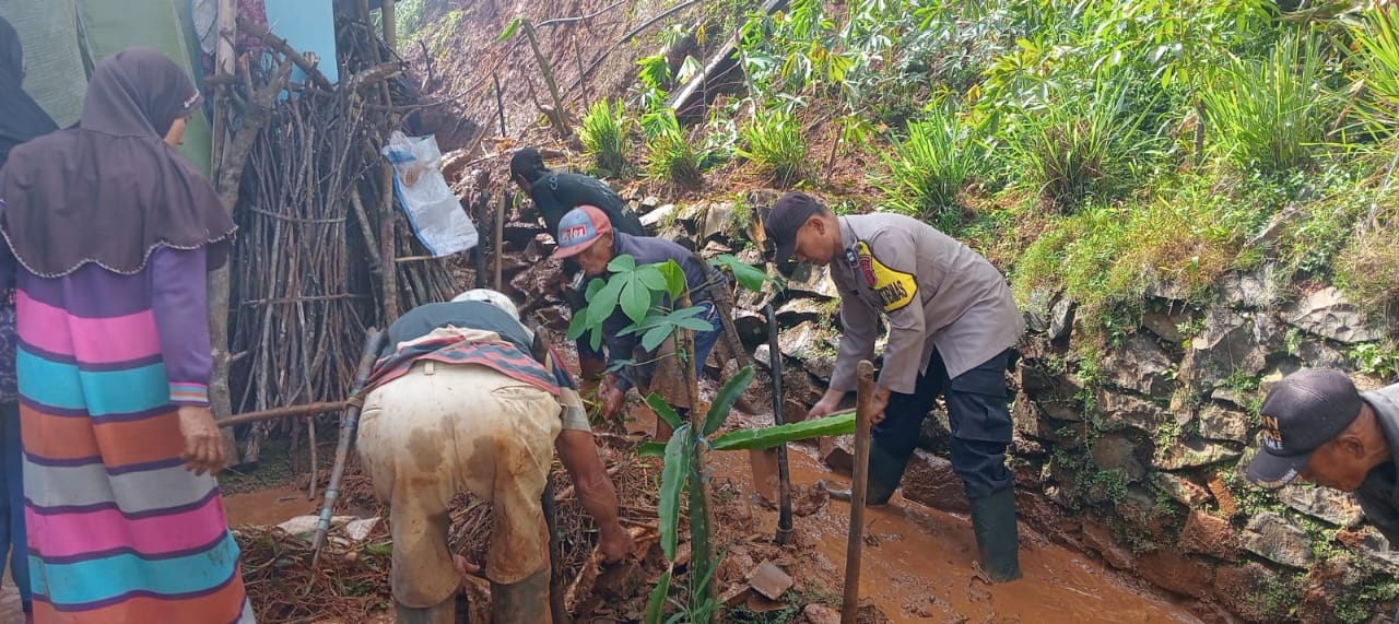 Selain melakukan peninjauan dan pendataan, aparat kepolisian juga membantu warga setempat membersihkan sisa material tanah yang menumpuk di sekitar rumah korban. Mereka bekerja bersama masyarakat dan perangkat desa agar lingkungan sekitar kembali aman untuk ditinggali. Sinergi antara Polsek Kawali, pemerintah desa, serta warga menjadi bukti nyata bahwa semangat gotong royong masih kuat terjaga di tengah tantangan bencana alam.